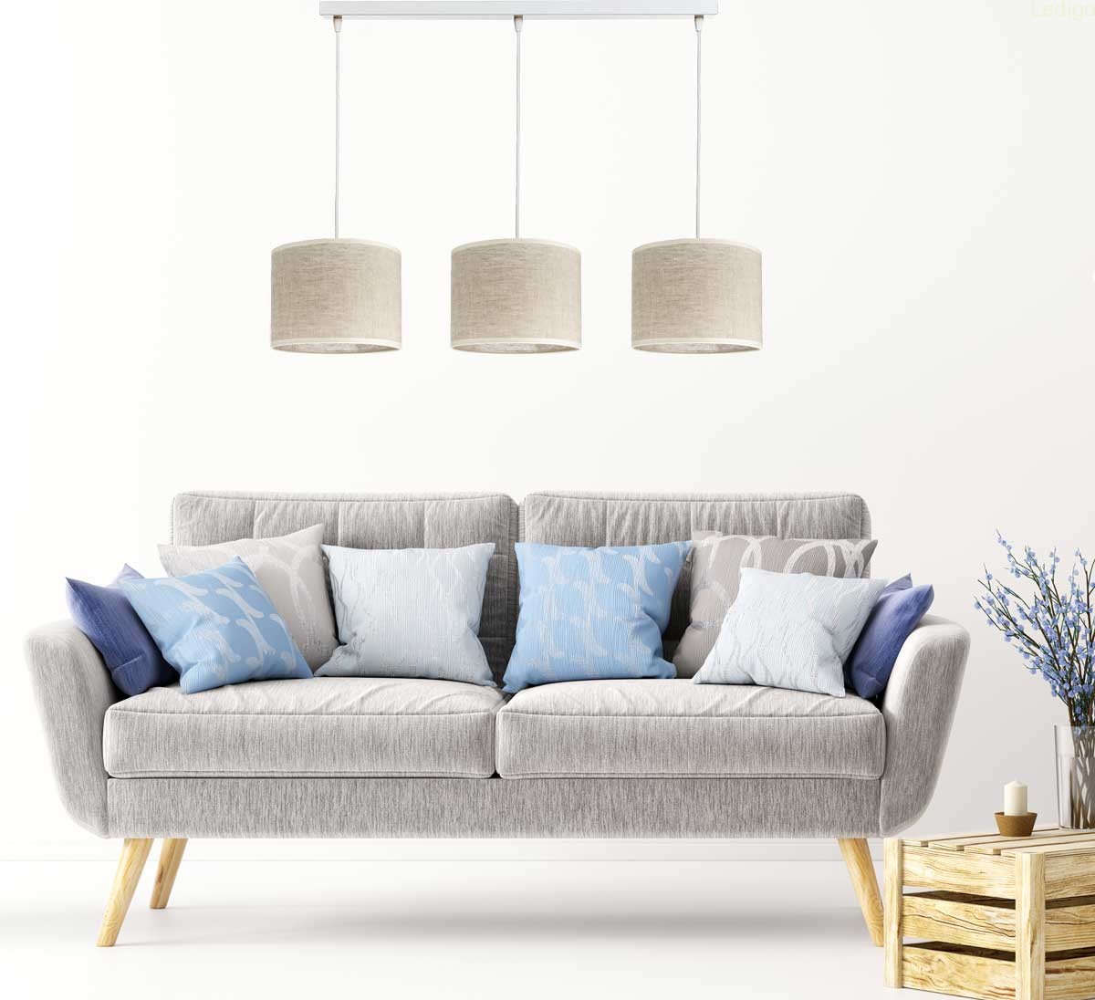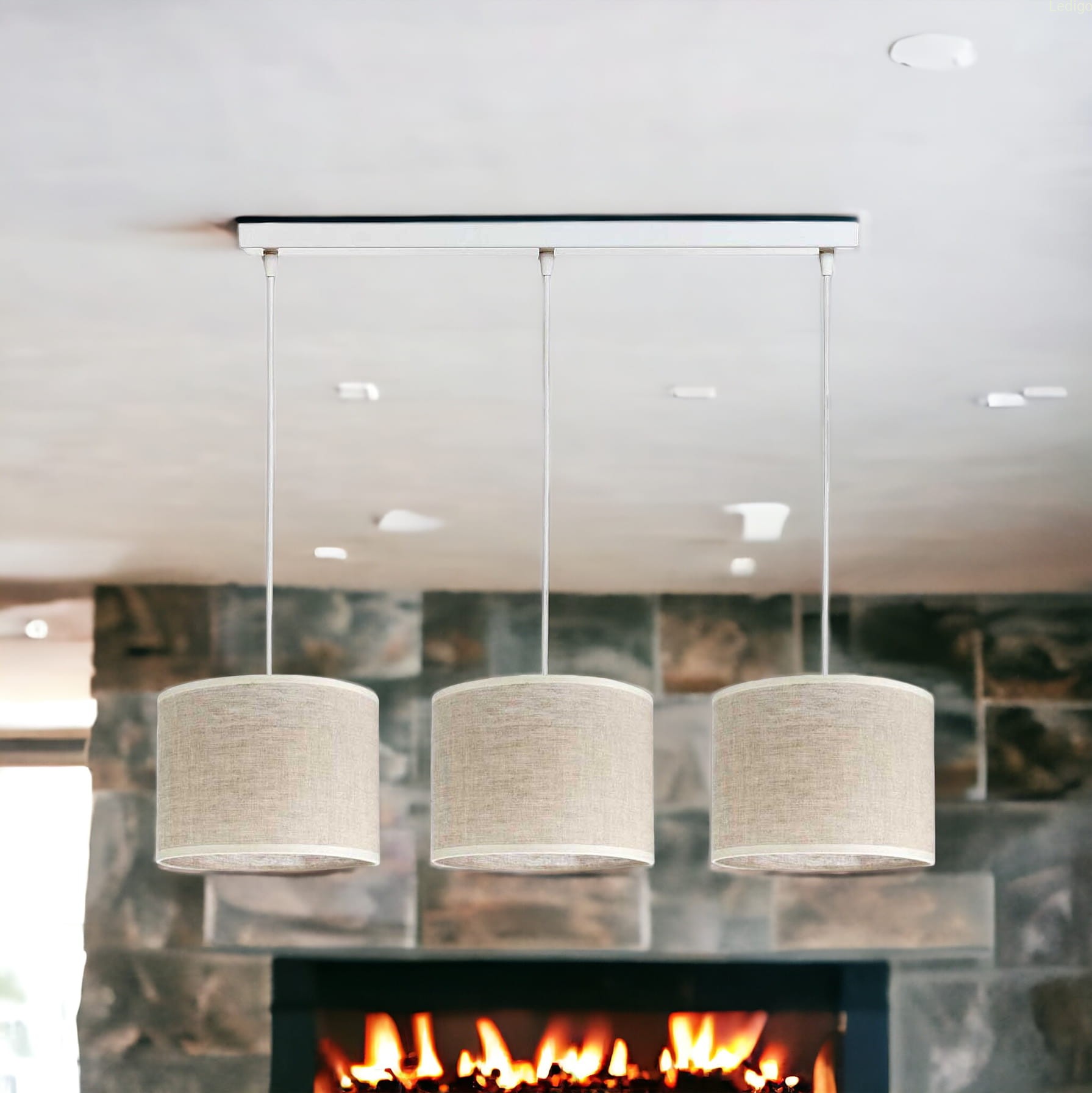 Lampa została zaprojektowana w duchu minimalizmu. Prosta forma stalowej belki i abażurów nadaje lampie lekkości i charakteru. Lniane abażury olśnią każde pomieszczenie w twoim domu. Lampa idealnie wpisuje się w loftowe stylizacje nowoczesnych, oraz inspirowanych naturą wnętrz. Każda z trzech zawiesi posiada możliwość indywidualnej regulacji wysokości.