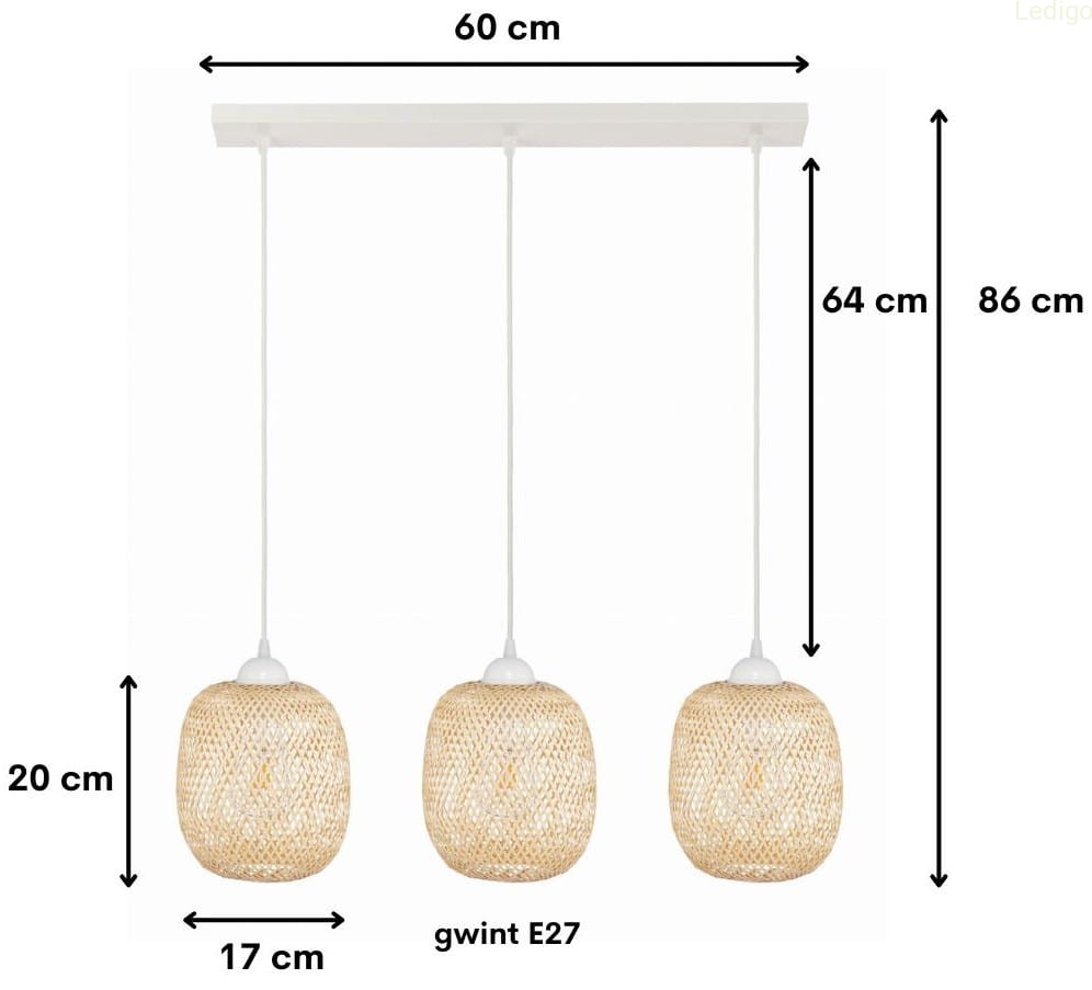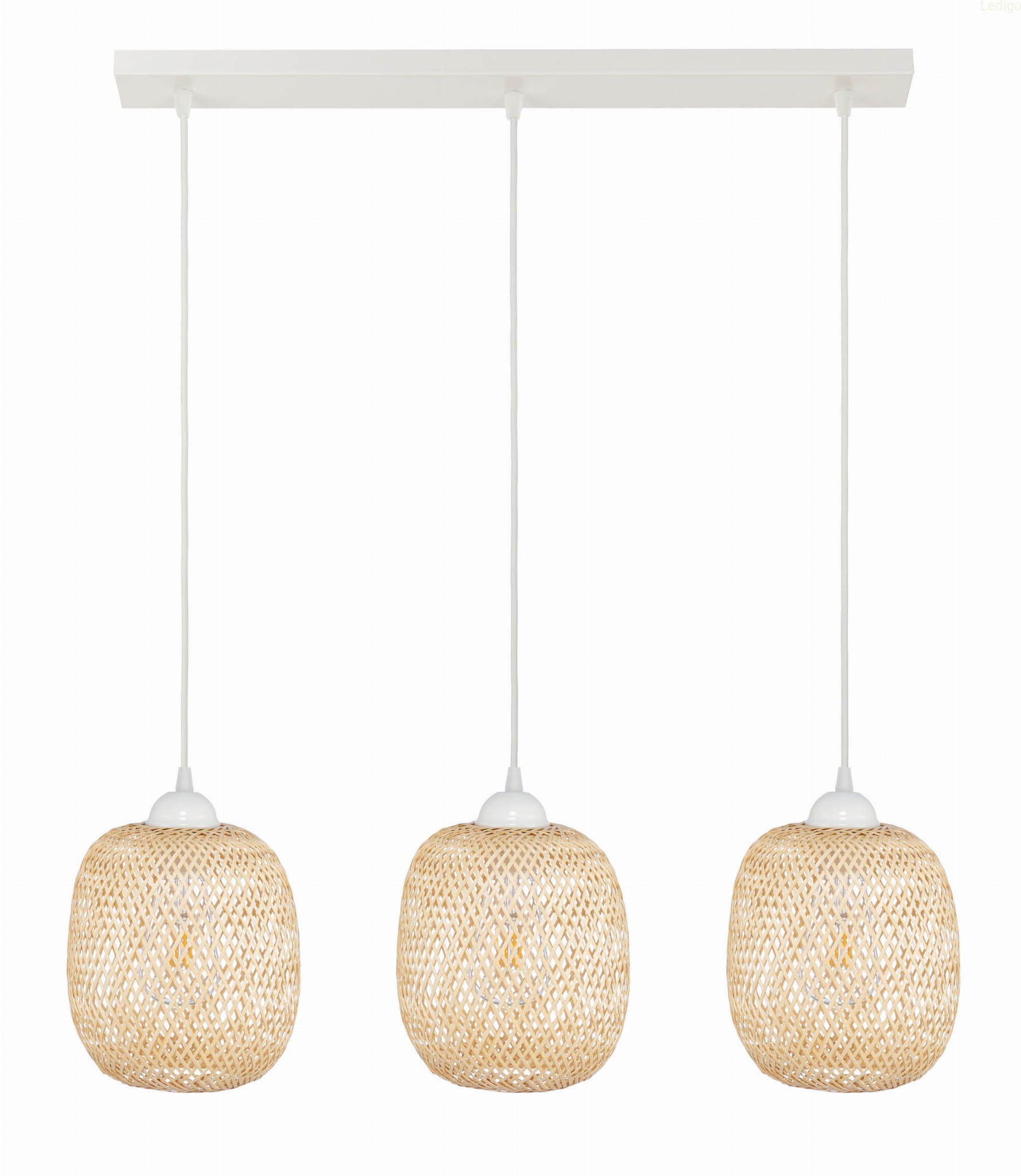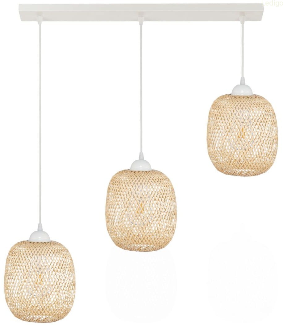 Lampa potrójna listwa biała klosz boho bambusowy PHU12B