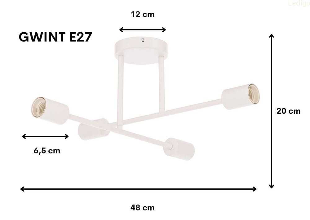 Każde z ramion zakończone jest klasyczną oprawą na żarówkę co zapewnia równomierne oświetlenie pomieszczenia.