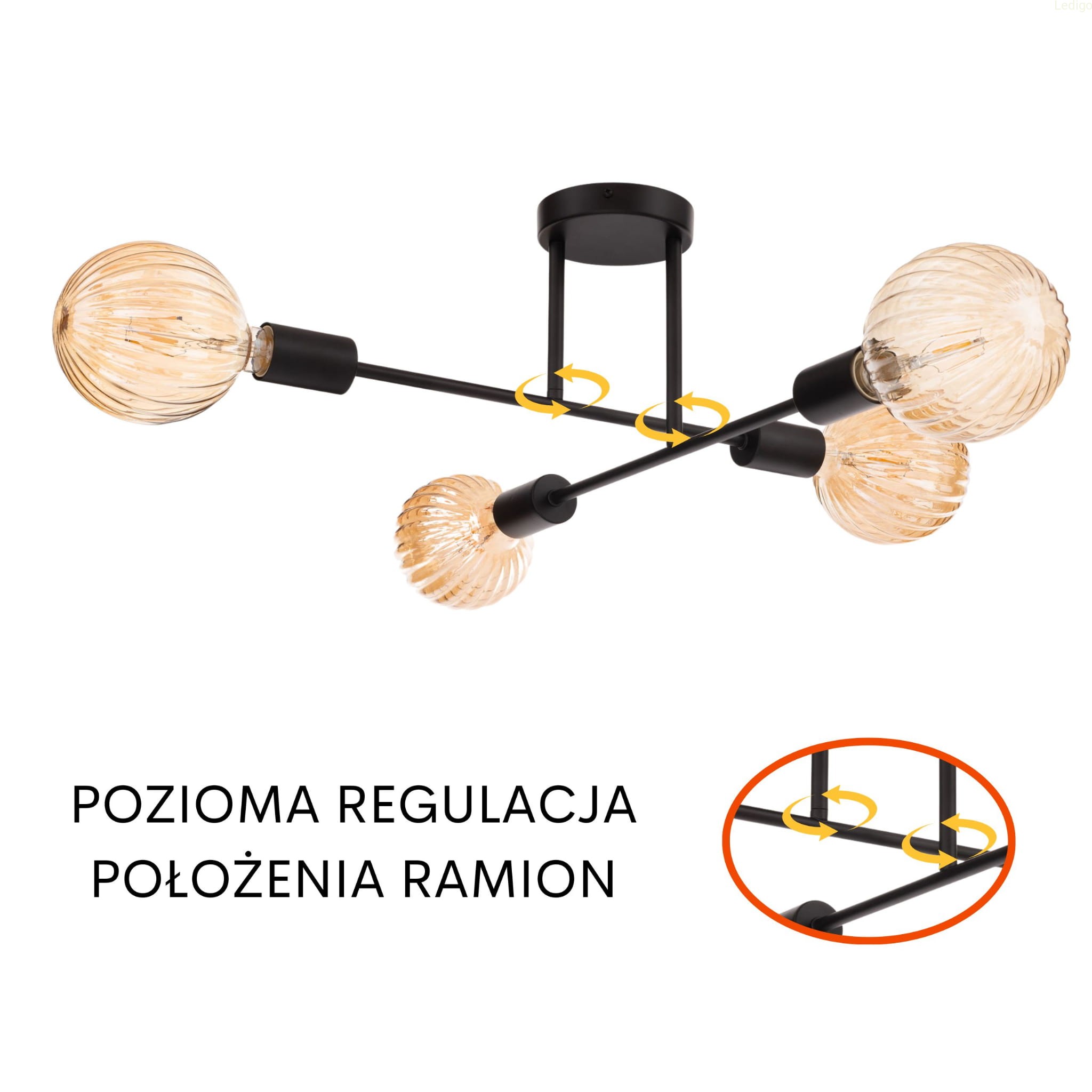 Optymalnie doświetli wnętrze - 4 ramiona równomiernie oświetlą pomieszczenie