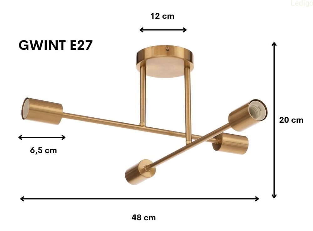 Każde z ramion zakończone jest klasyczną oprawą na żarówkę co zapewnia równomierne oświetlenie pomieszczenia..