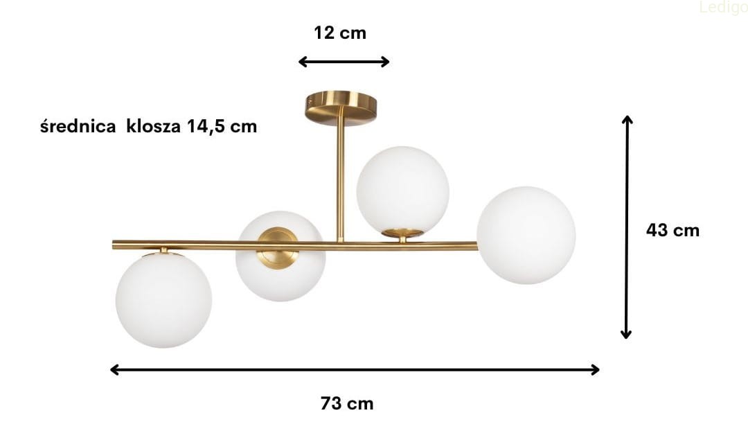 - elegancka estetyka - złote wykończenie w połączeniu z symetrycznym układem kul doskonale wpisuje się w nowoczesne i klasyczne wnętrza