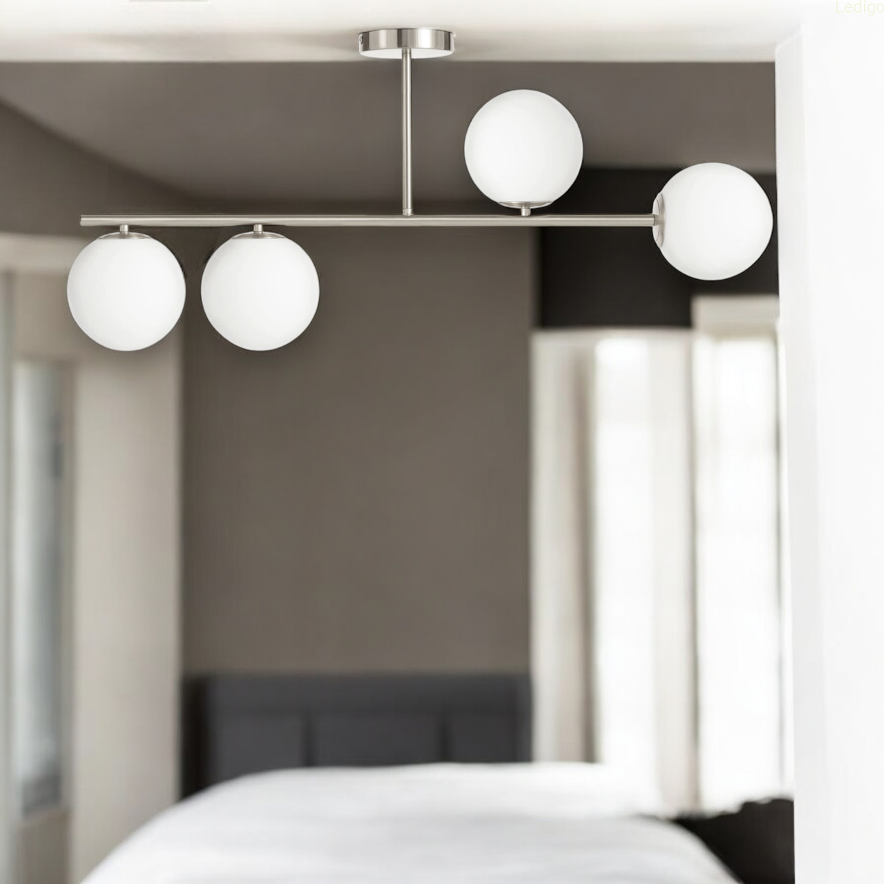 Lampa sufitowa Milano 4 klosze mleczne kule silver EP1C16