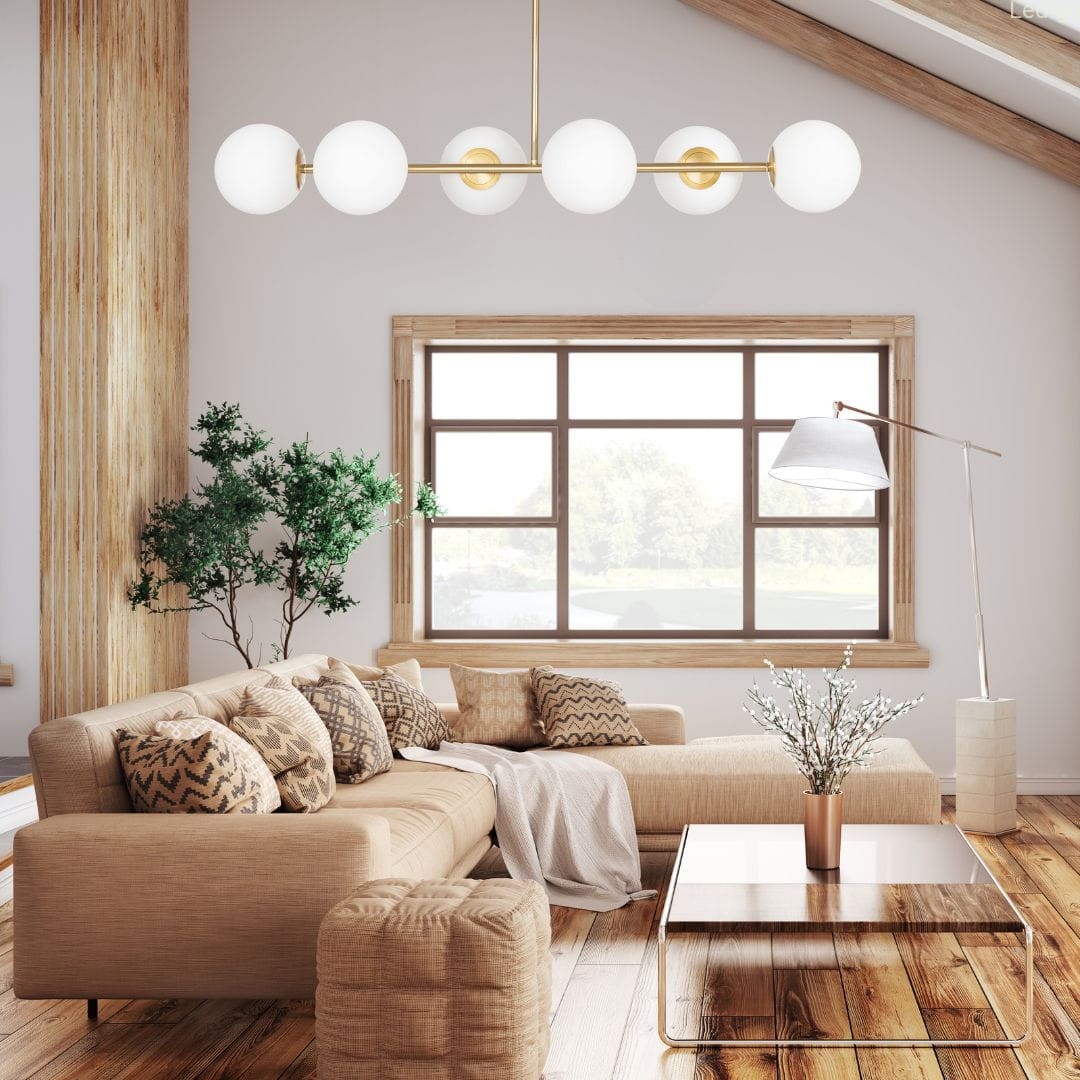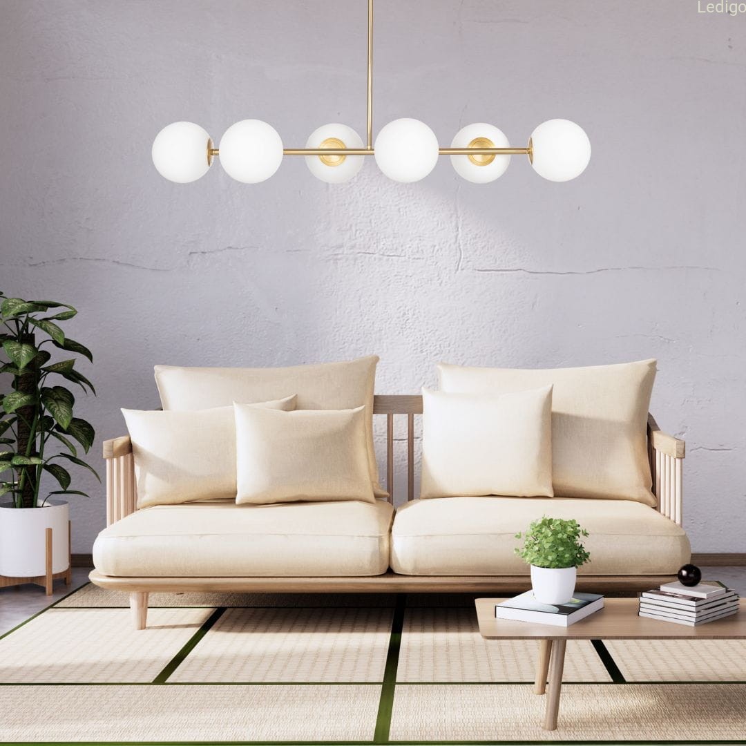 Lampa Milano EP1C22 Gold od firmy Ledigo to rozbudowany wariant serii Milano, wyposażony w 6 punktów świetlnych ukrytych w mlecznobiałych kulach, co zapewnia doskonałe doświetlenie nawet większych przestrzeni, takich jak salony czy jadalnie.