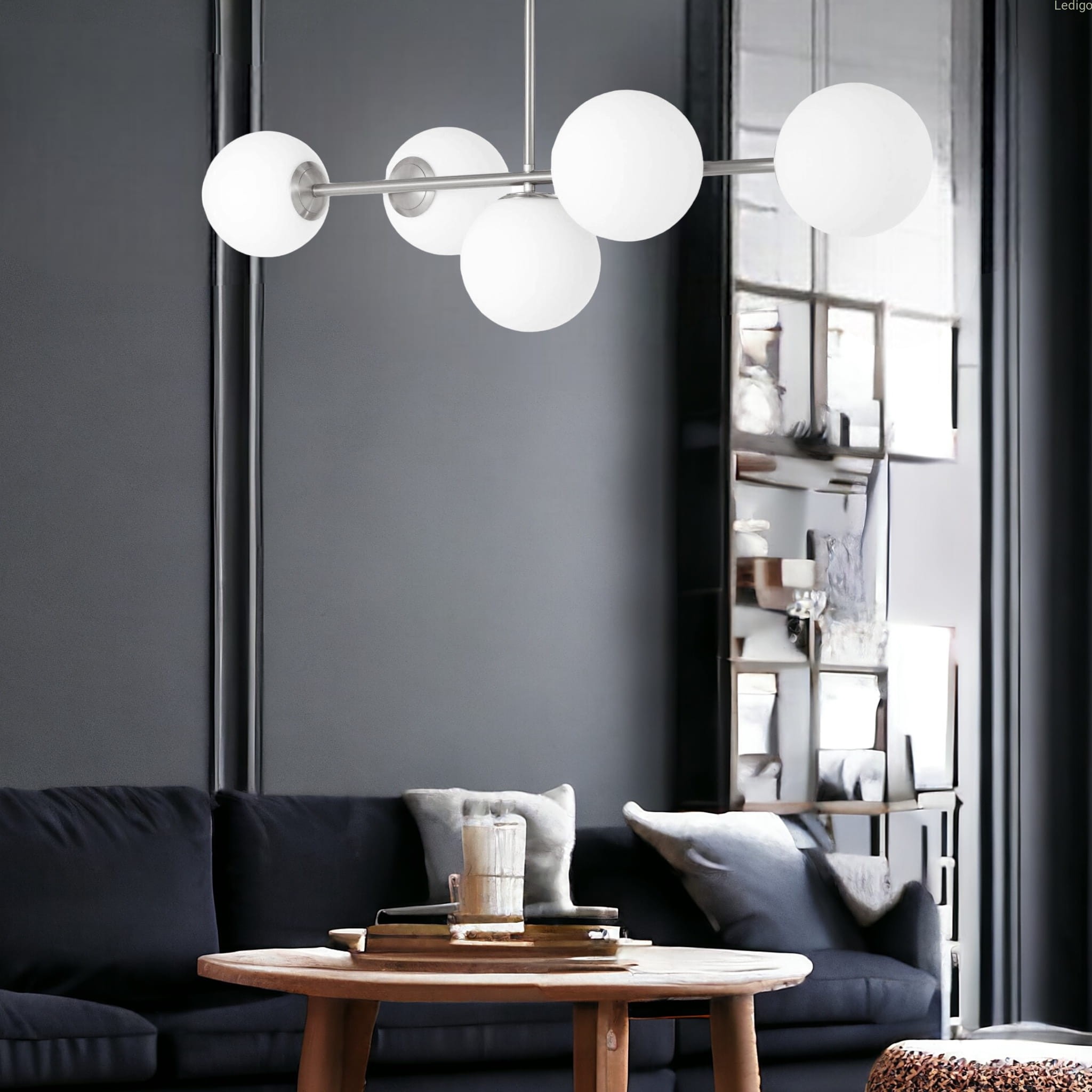Lampa sufitowa Milano silver 5 kloszy mleczne kule