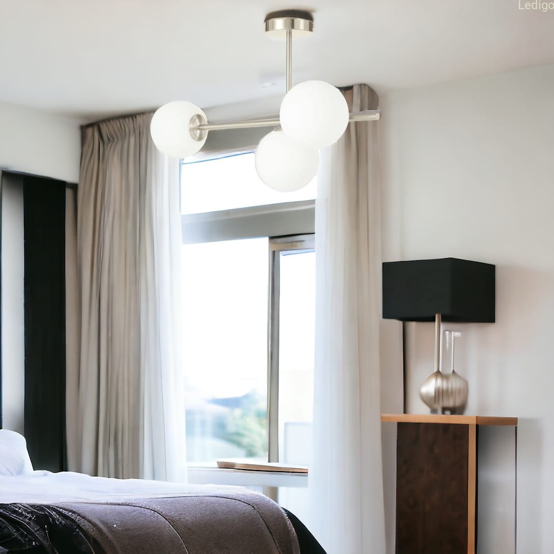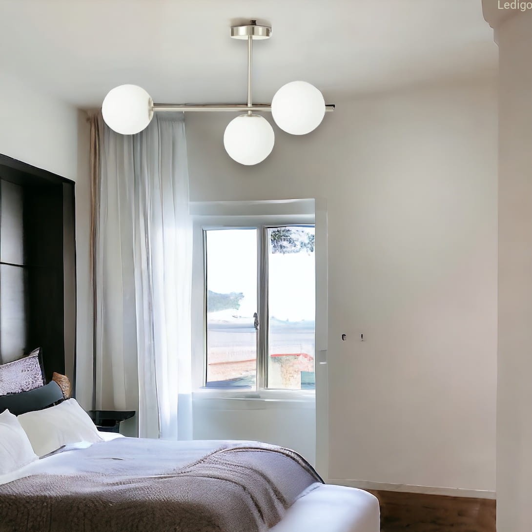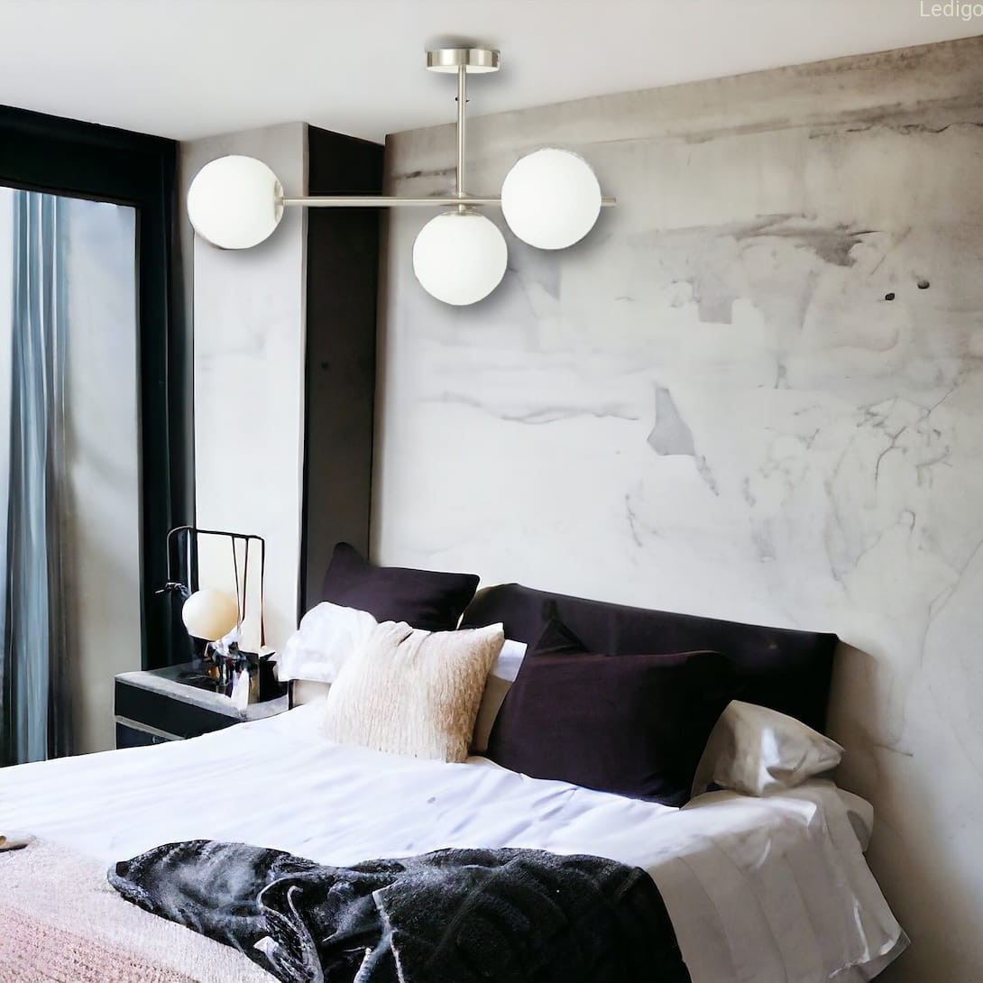 Efekt "mlecznej poświaty" - trzy perfekcyjne, szklane kule w matowej bieli idealnie rozpraszają światło. Zapomnij o rażeniu w oczy – Milano wypełnia pokój miękkim, kojącym blaskiem, który sprzyja relaksowi.