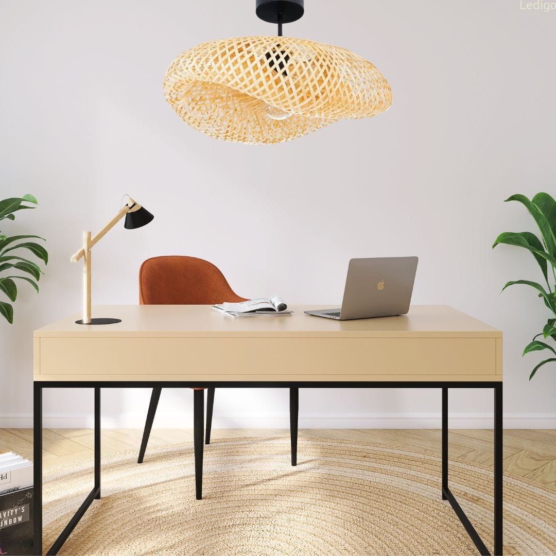• rękodzieło z duszą - lampa jest wykonana z ręcznie plecionego bambusa. To oznacza, że każda sztuka ma swoją historię – splot może być minimalnie inny, a odcień drewna unikalny. To mebel z „duszą”, który ociepla nawet bardzo surowe, nowoczesne wnętrza.