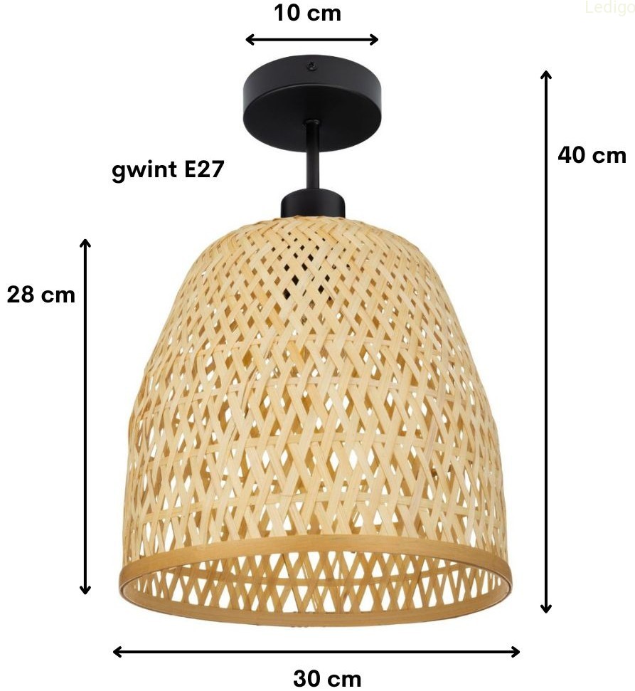 Lampa montowana w typie plafonu z odkręcanym bambusowym kloszem.