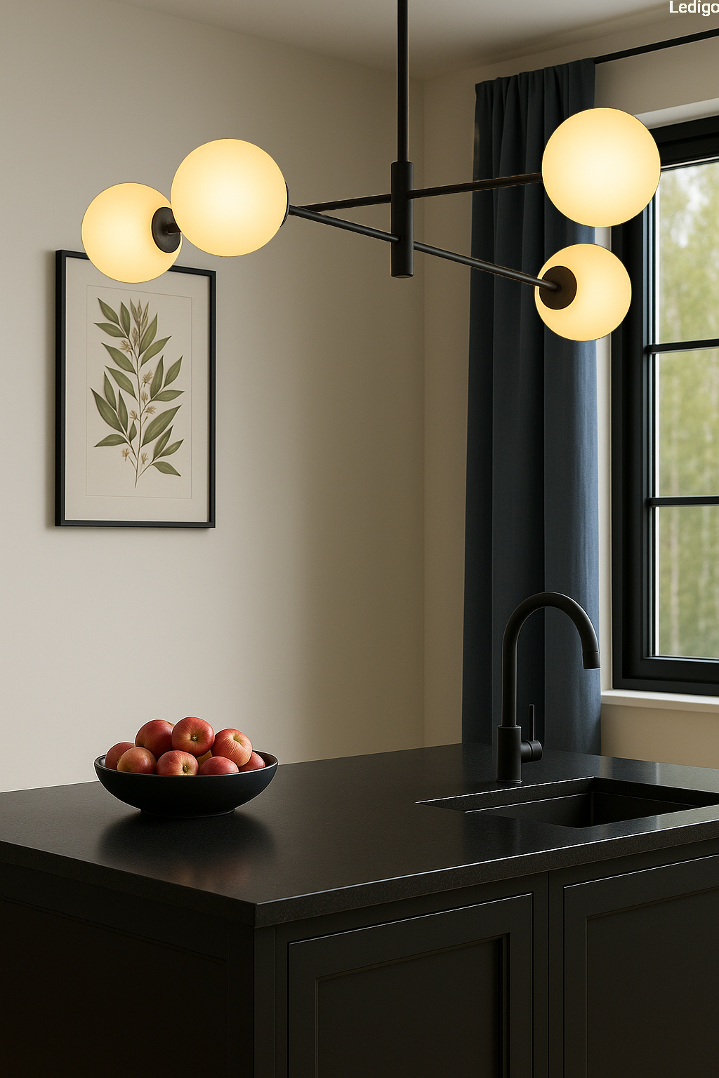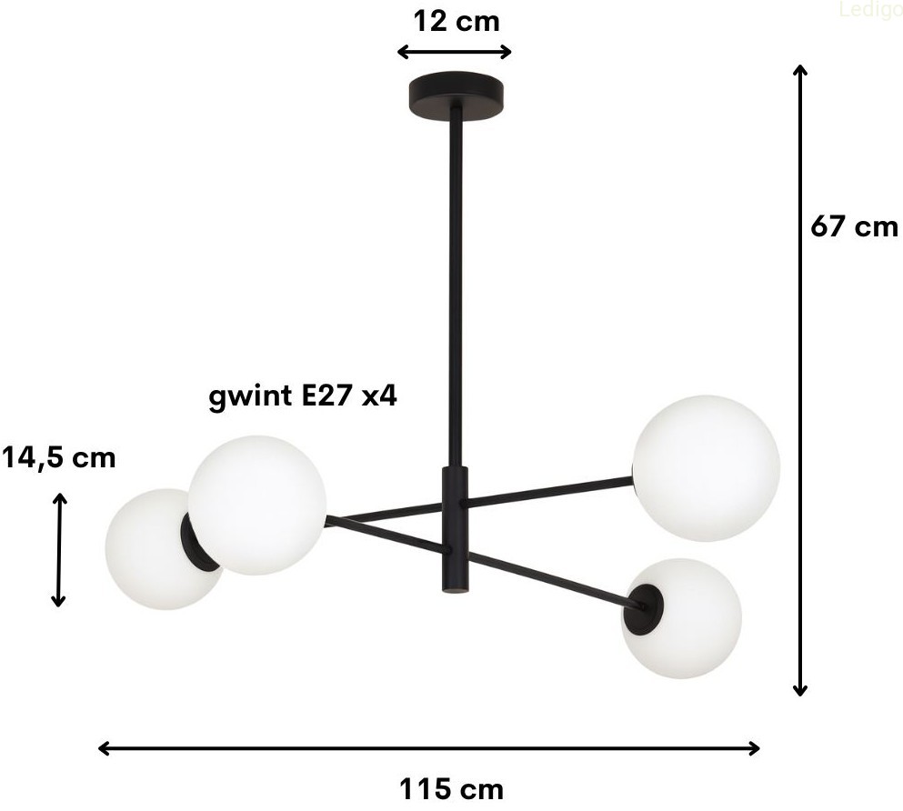- elegancka estetyka - czarne wykończenie w połączeniu z symetrycznym układem kul doskonale wpisuje się w nowoczesne i klasyczne wnętrza