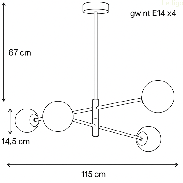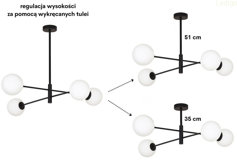 - łatwy montaż kloszy - kule są nakręcane na gwint, to bezpieczniejsze i wygodniejsze rozwiązanie niż tradycyjne sprężynki, które często rysują szkło lub pękają