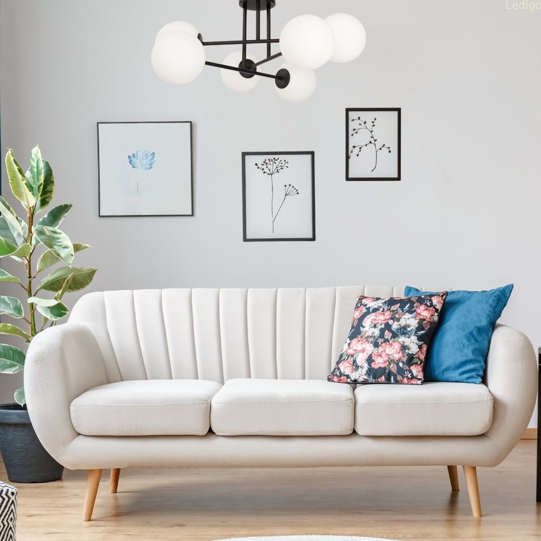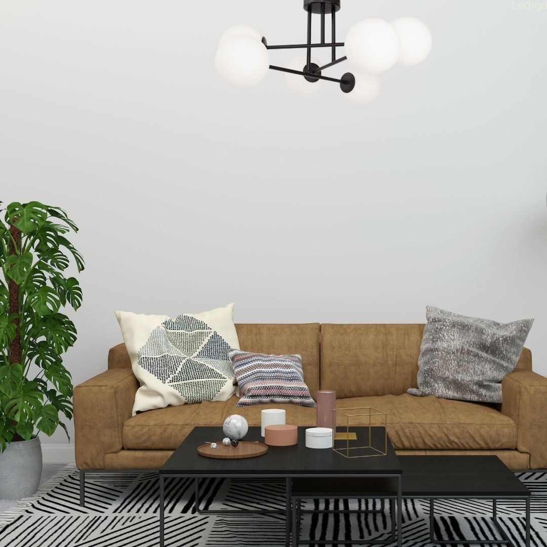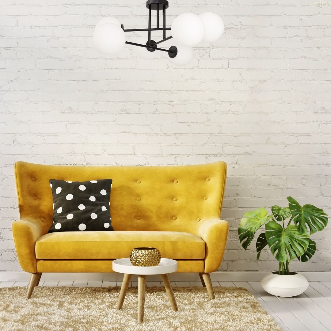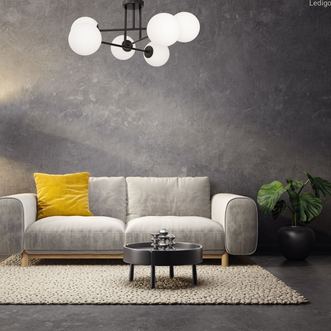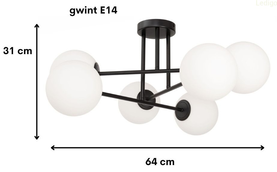Wyposażona jest w 6 mlecznobiałych szklanych kul, które emitują miękkie, rozproszone światło, tworząc przytulną atmosferę i nie rażąc domowników.