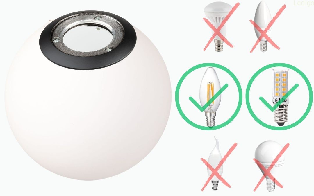 Do lampki pasują wyłącznie wąskie i krótkie żarówki o maksymalnych wymiarach: