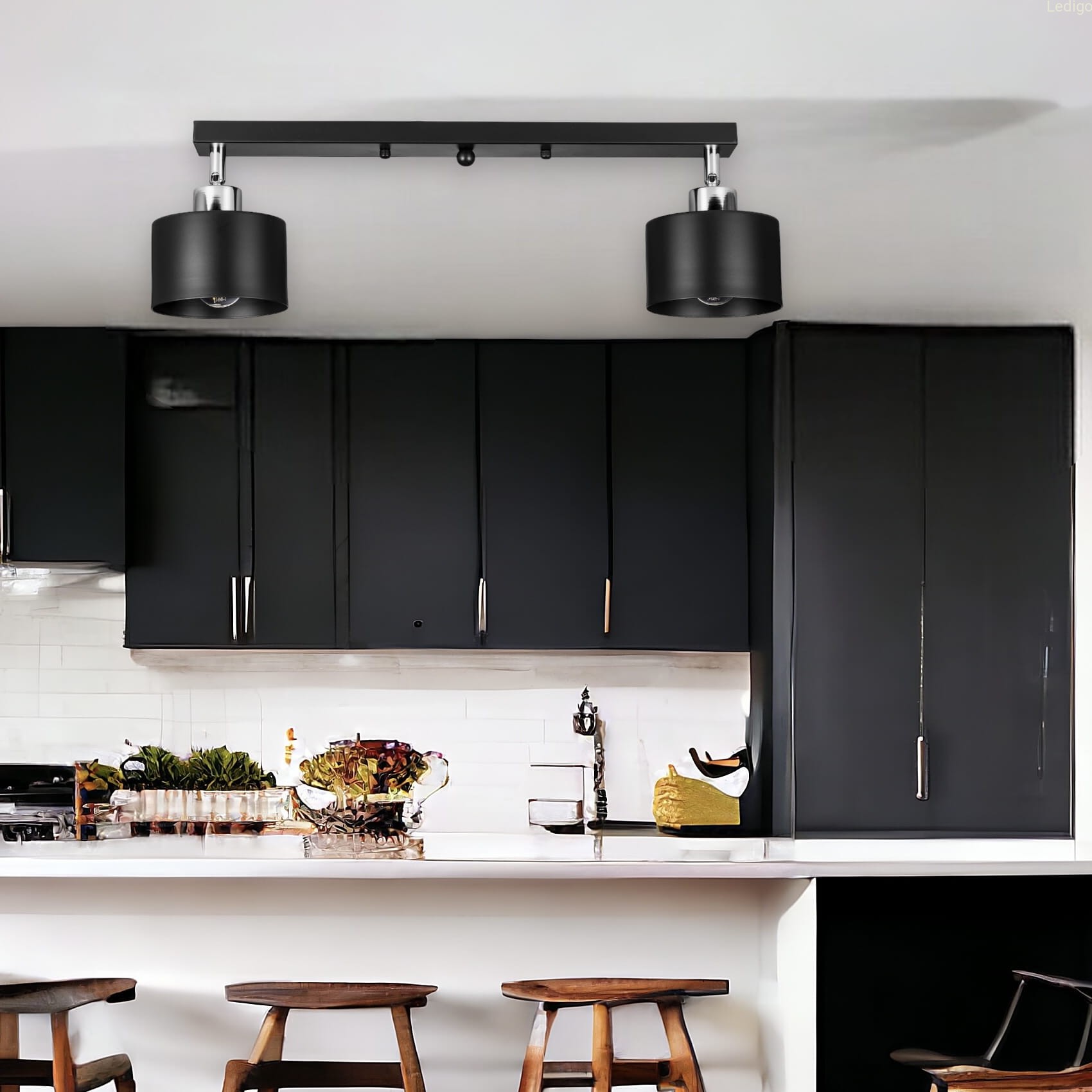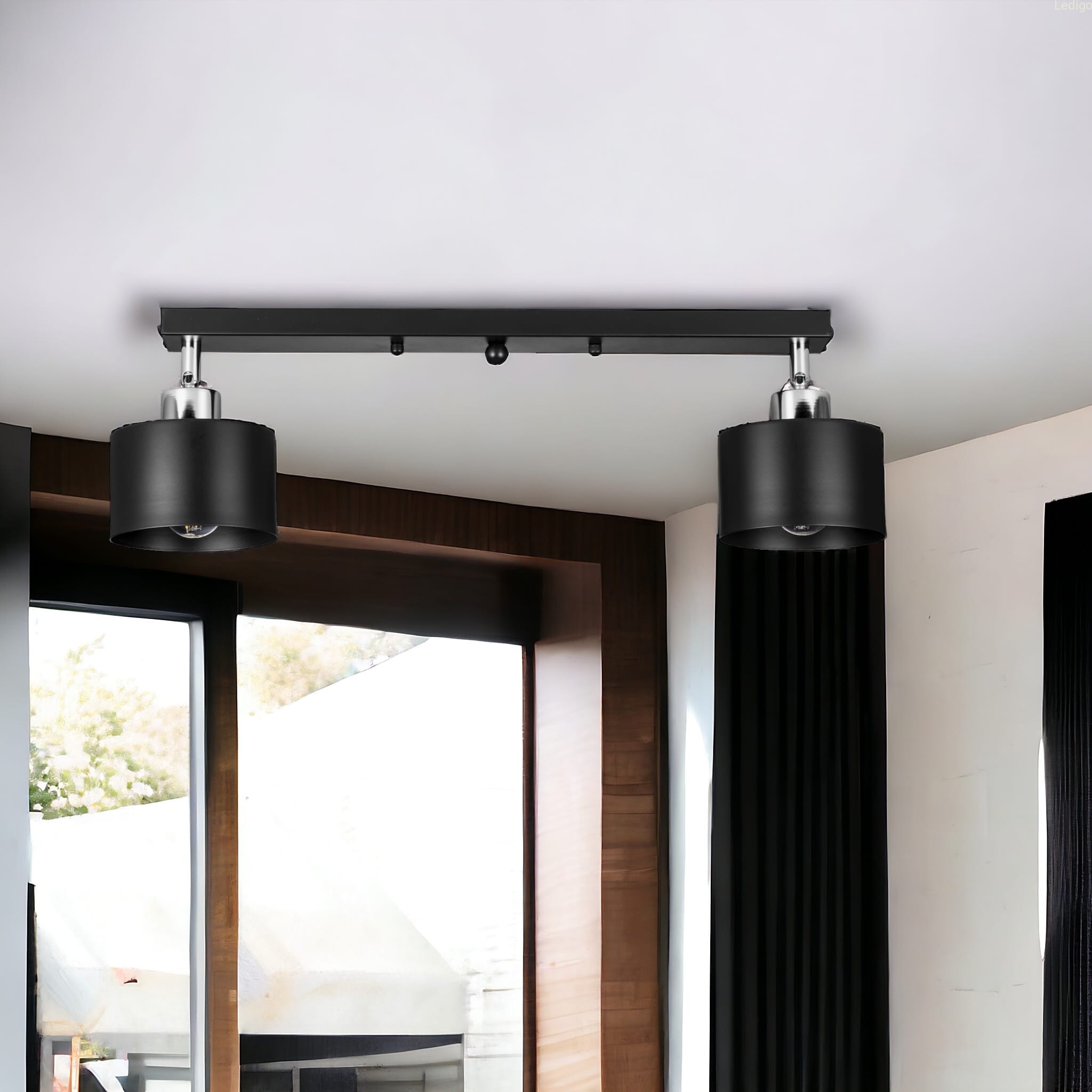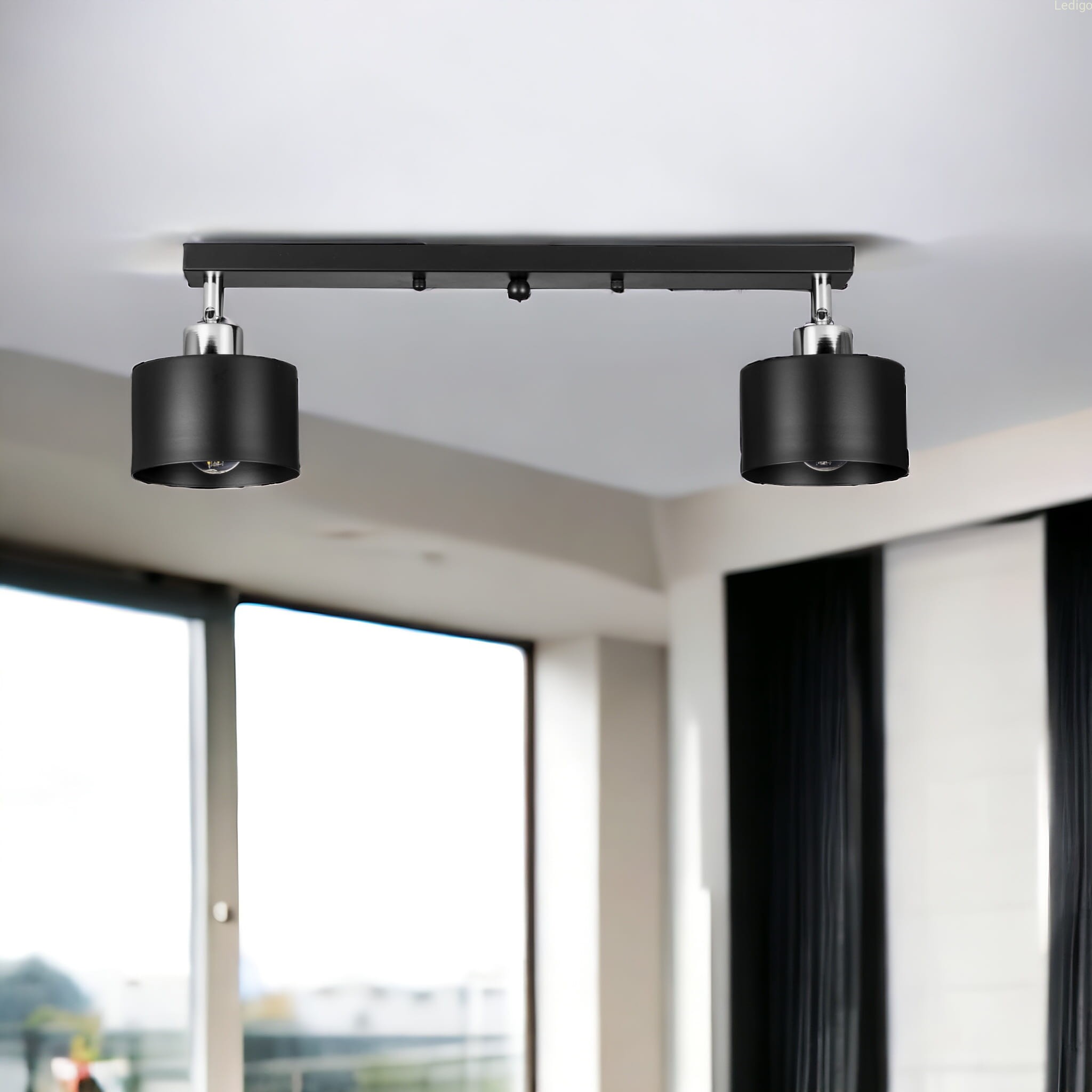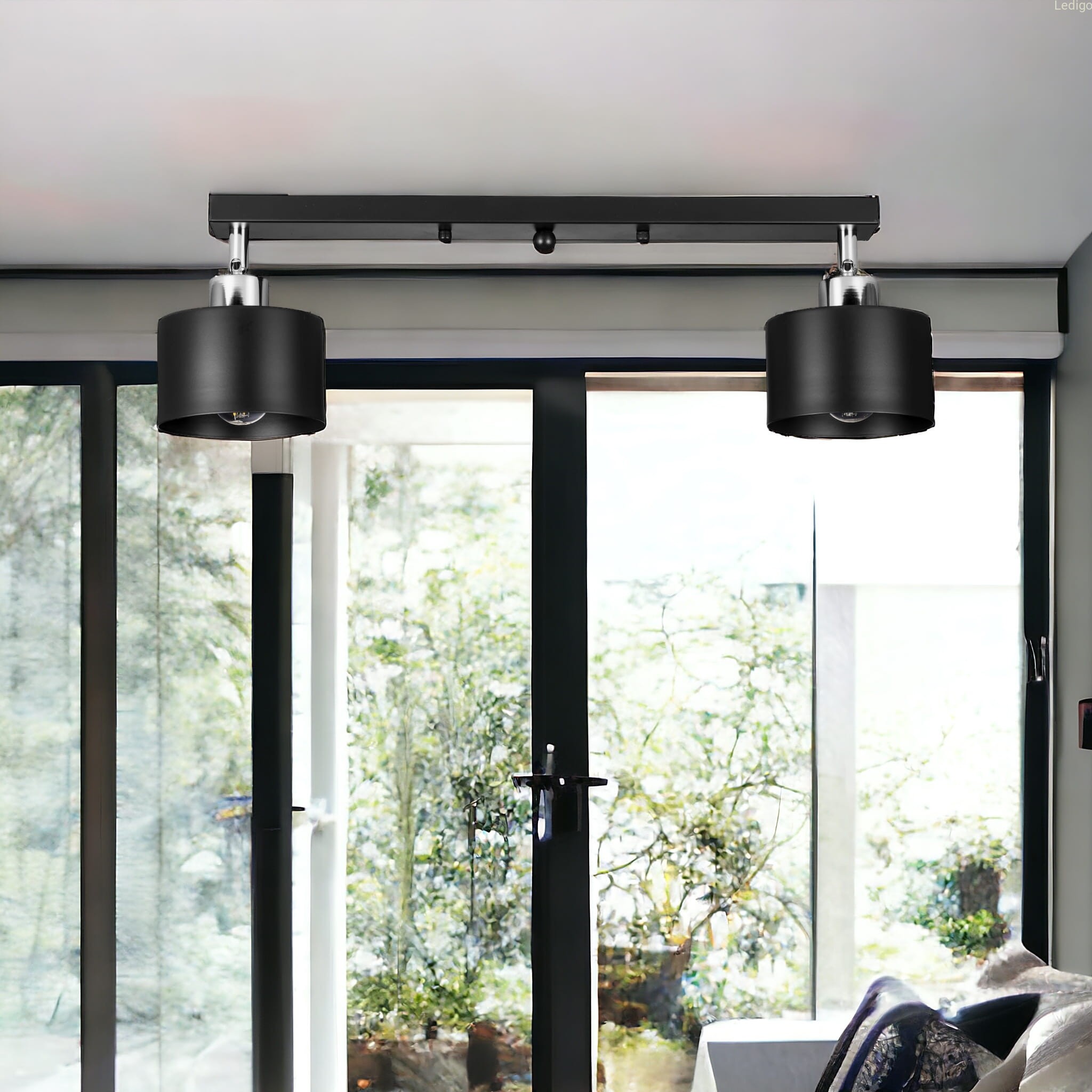 Rodzaj lampy: lampa sufitowa Dwuobwodowość: nie Styl: loft Tworzywo: metal Kolor klosza: czarny Kolor uchwytu: Czarny Kolor podsufitki: Czarna listwa Wymiary: Długość listwy 50cm; średnica pojedynczego klosza 12,5cm Regulacja wysokości: nie Napięcie: 230V Źródło światła w zestawie: nie Czas realizacji: 24h