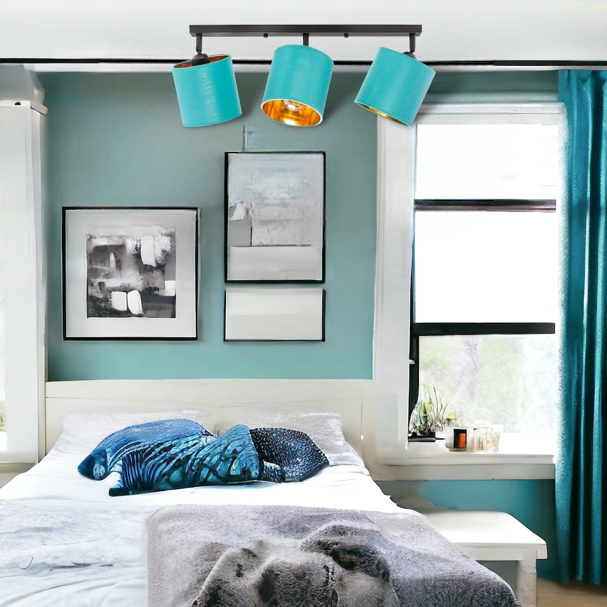 Lampa sufitowa listwa potrójna turkusowa abażur Oro