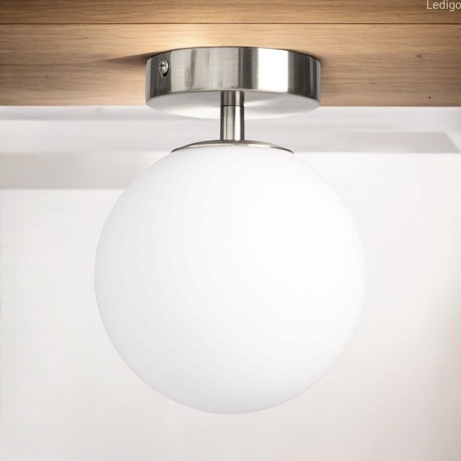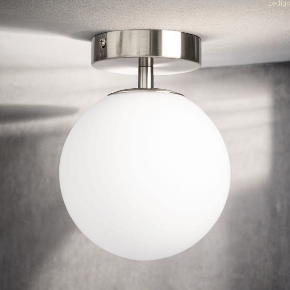 - ponadczasowa estetyka - lampa łączy w sobie elegancję szczotkowanego srebra z minimalistyczną formą białej kuli. Taki design sprawia, że oprawa nie wychodzi z mody i pasuje do wielu stylów: od nowoczesnego i glamour, po loftowy czy klasyczny