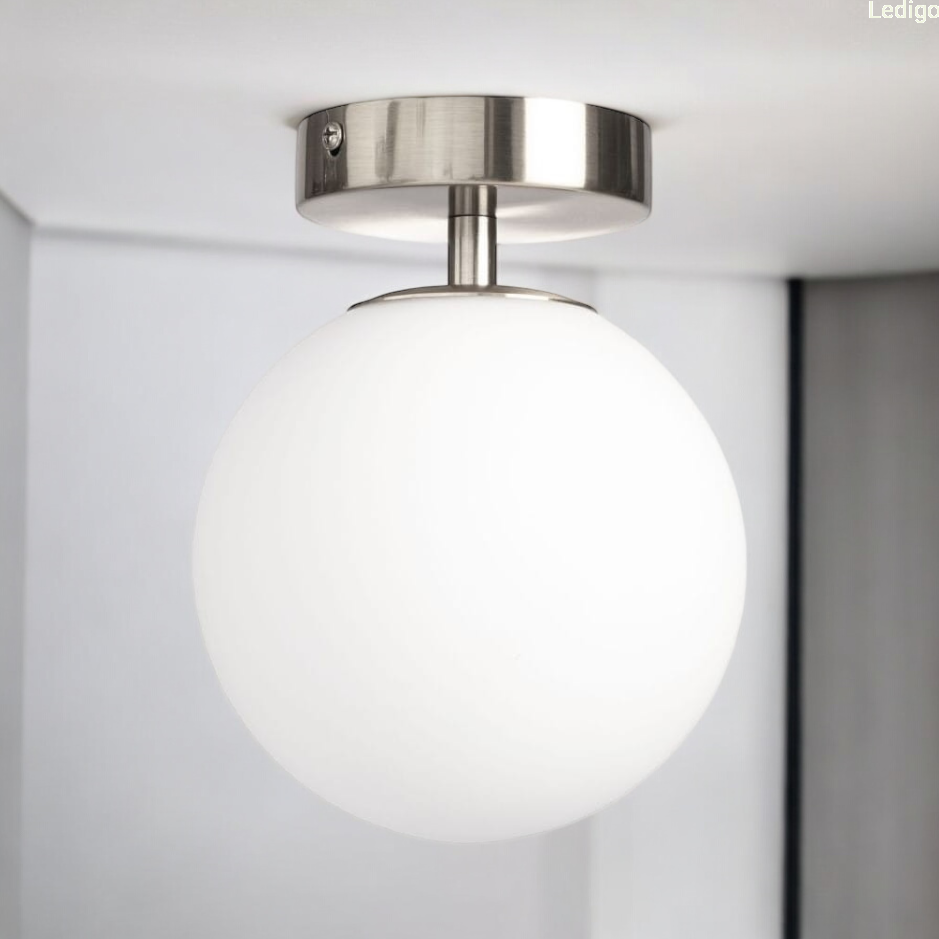 Plafon Milano Silver z firmy Ledigo to nowoczesna i elegancka oprawa sufitowa, która charakteryzuje się minimalistycznym designem opartym na połączeniu metalu w kolorze srebrnym oraz szklanego, mleczne klosz w kształcie kuli. Lampa posiada prostą, geometryczną formę, która doskonale wpisuje się w style nowoczesne, loftowe oraz klasyczne. Srebrny stelaż dodaje wnętrzu luksusowego charakteru, a biały klosz nadaje całości lekkości.