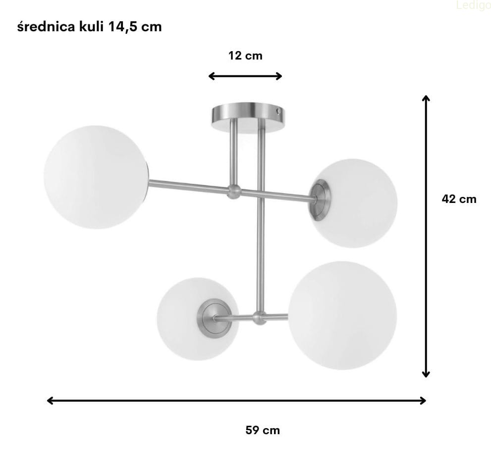 - łatwy montaż kloszy - kule są nakręcane na gwint, to bezpieczniejsze i wygodniejsze rozwiązanie niż tradycyjne sprężynki, które często rysują szkło lub pękają.