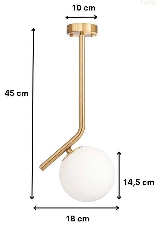 Lampa wisząca Milano Meteor Gold marki Ledigo to minimalistyczna i elegancka oprawa, która łączy nowoczesny design z klasycznym zestawieniem kolorystycznym bieli i złota. Model ten wyróżnia się asymetryczną, smukłą konstrukcją stelaża, na którym osadzony jest pojedynczy, kulisty klosz.