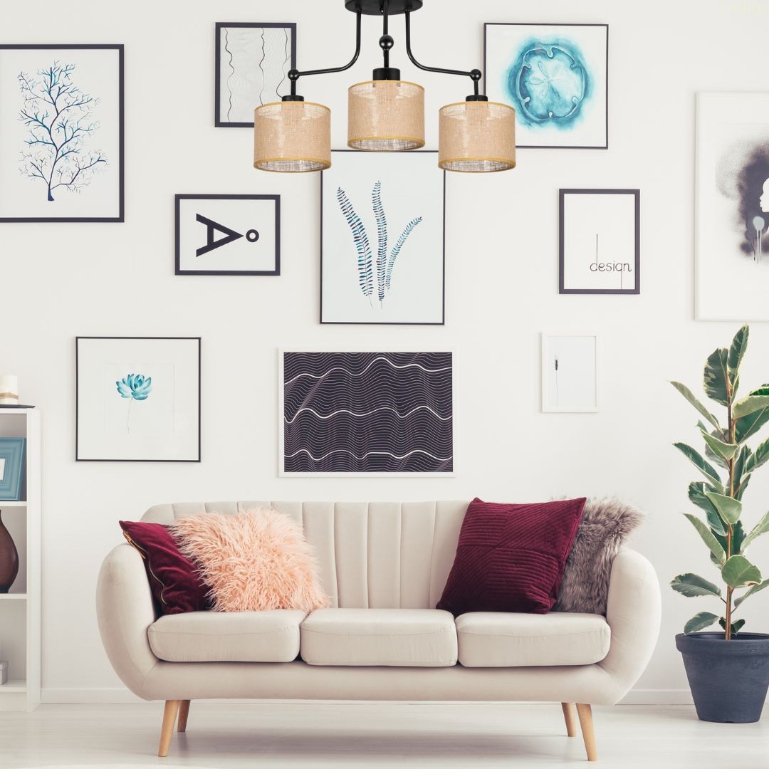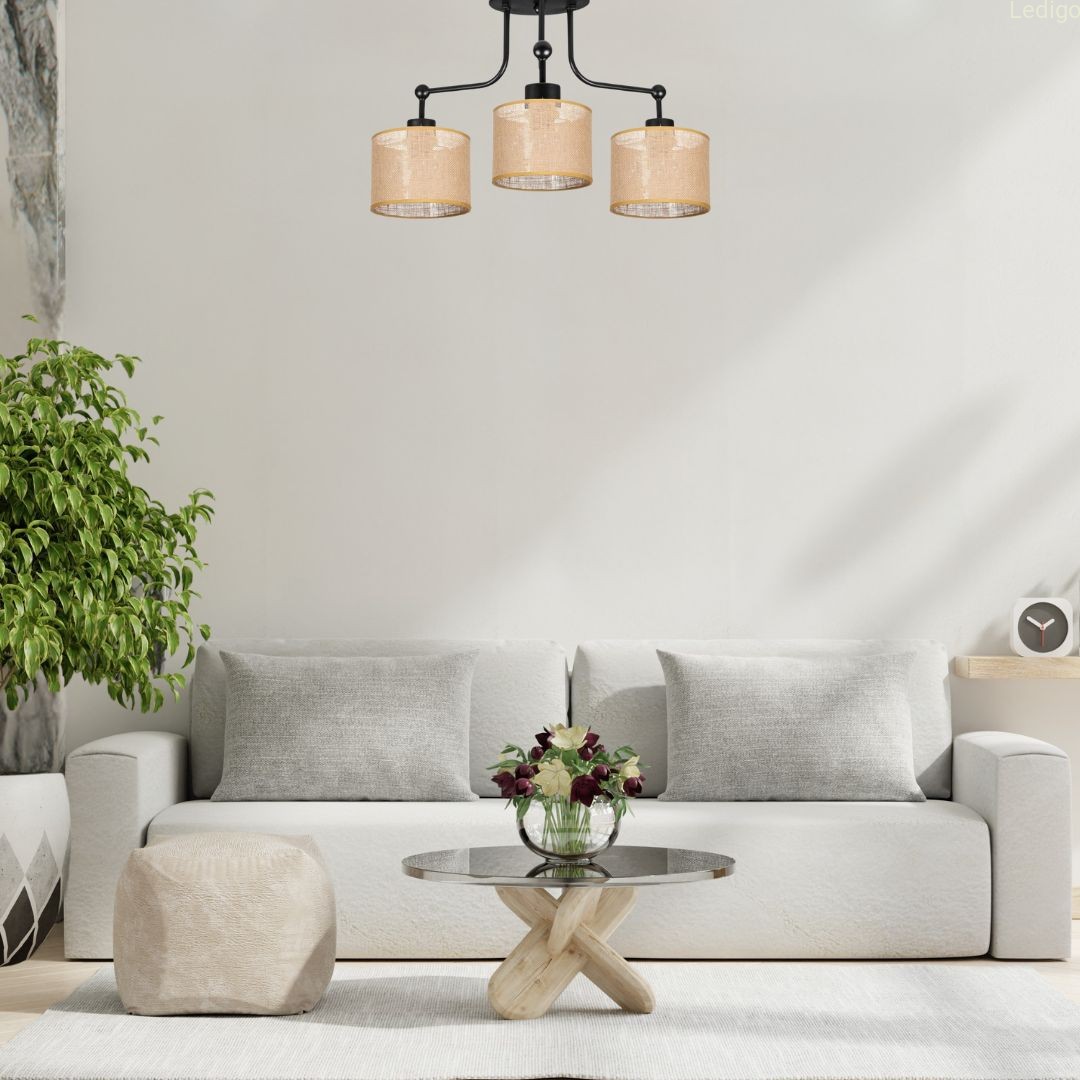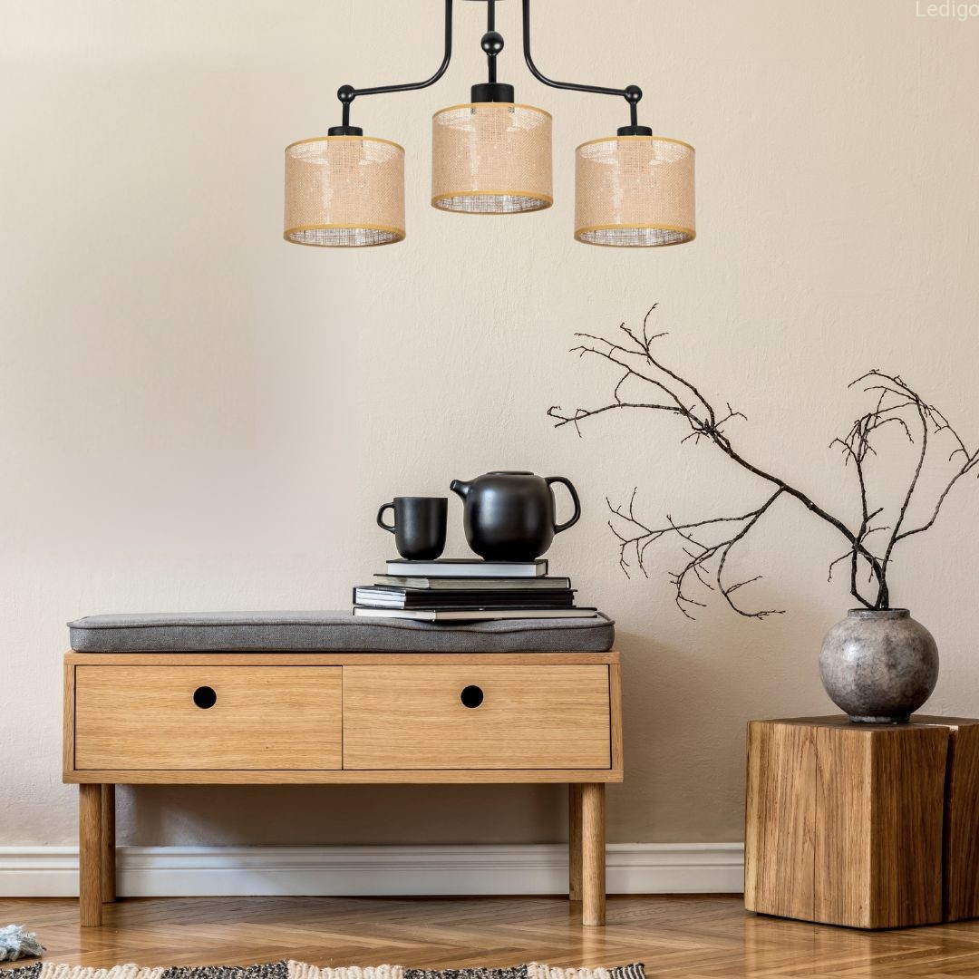 Lampa sufitowa żyrandol 3 abażury juta naturalna kaszmir