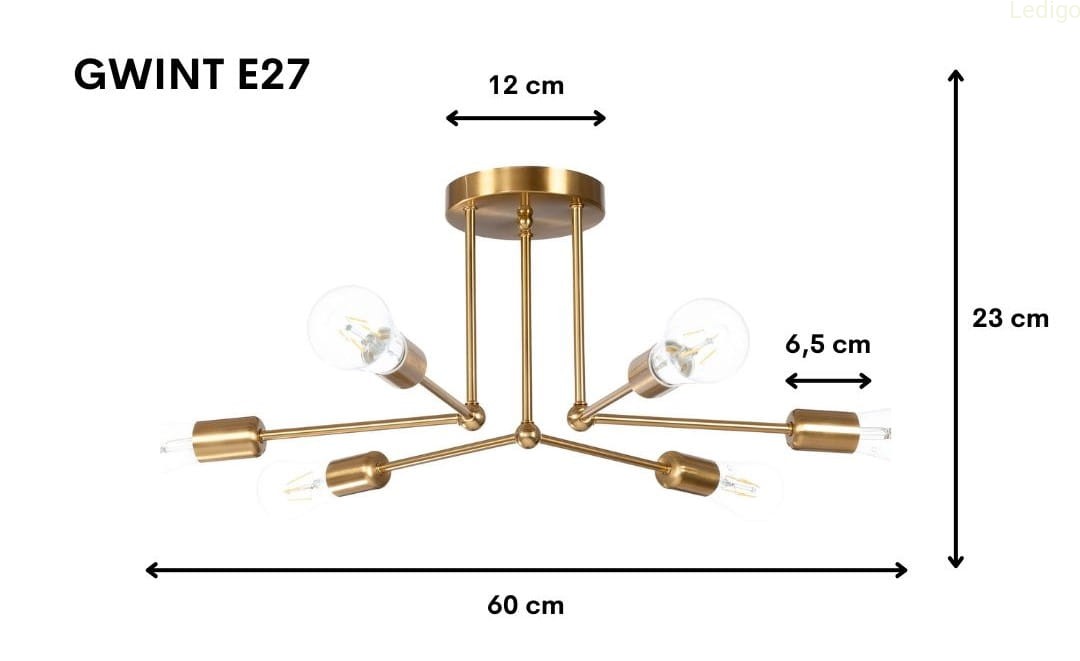 Każde z ramion zakończone jest klasyczną oprawą na żarówkę co zapewnia równomierne oświetlenie pomieszczenia.