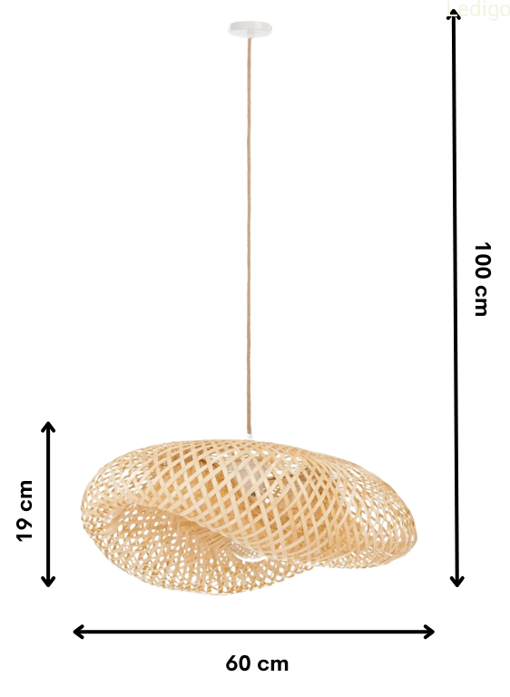 - unikatowość - Nusa nie pochodzi z taśmy produkcyjnej, gdzie każdy detal jest identyczny. To ręcznie pleciony bambus, co oznacza, że Twoja lampa ma swój własny „kod genetyczny” – unikalny układ włókien i subtelne różnice w odcieniu. Jej nieregularny, lekko pofalowany kształt przypomina kapelusz lub egzotyczny kwiat, który unosi się w powietrzu.