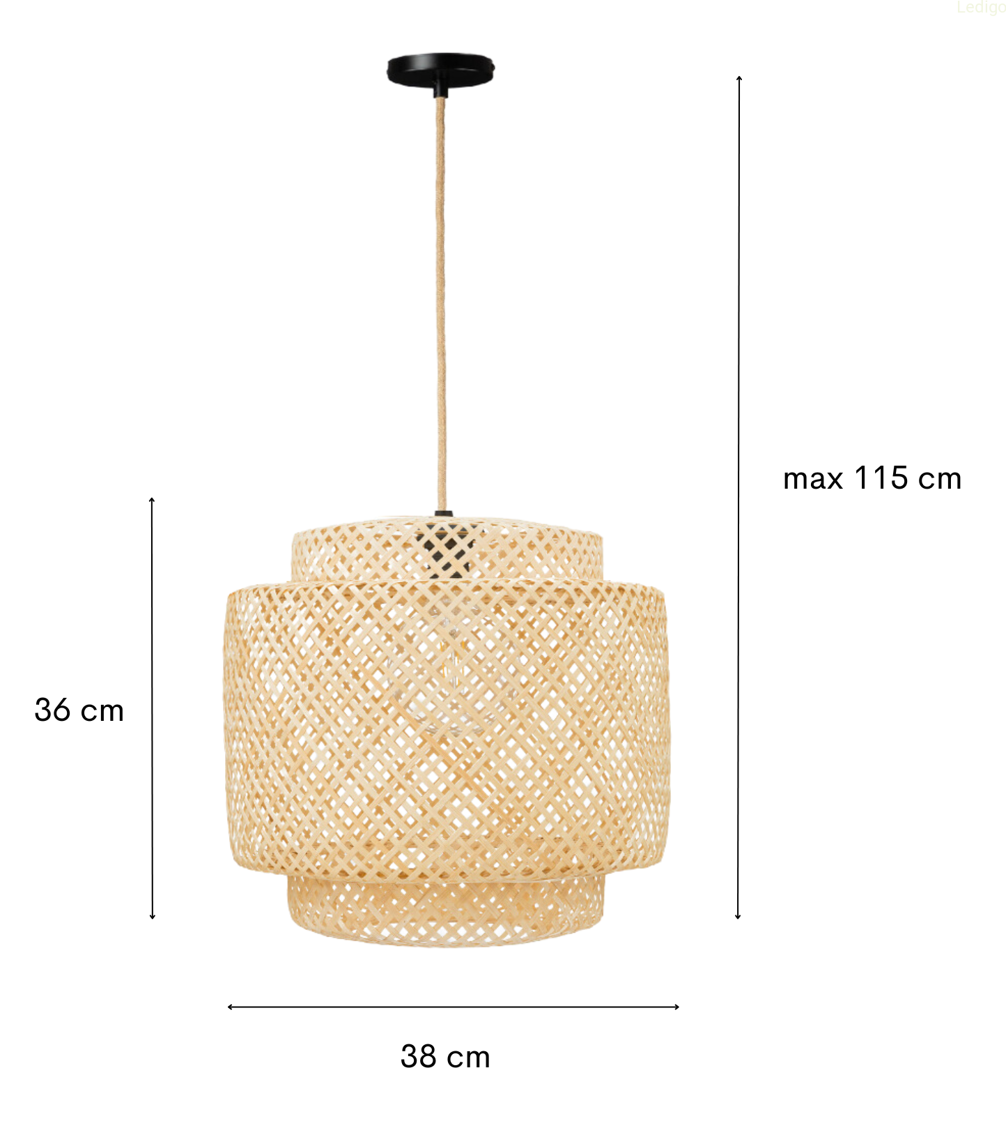 - gra światła i cienia - kluczem do uroku tego modelu jest jego ażurowa konstrukcja. Ręcznie pleciony bambus nie blokuje światła, lecz subtelnie je filtruje. Po włączeniu lampy, na ścianach i suficie pojawia się widowiskowa mozaika cieni, która buduje przytulny klimat.