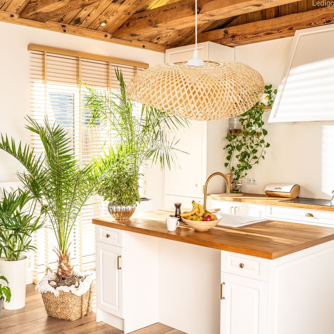 - dotyk natury - w przeciwieństwie do plastikowych czy metalowych lamp, Nusa wprowadza do domu autentyczność. Wykonana ze starannie wyselekcjonowanego bambusa, ociepla wystrój nie tylko wizualnie, ale i sensorycznie. Pasuje idealnie tam, gdzie królują rośliny, len i naturalne drewno.