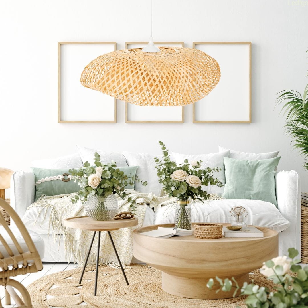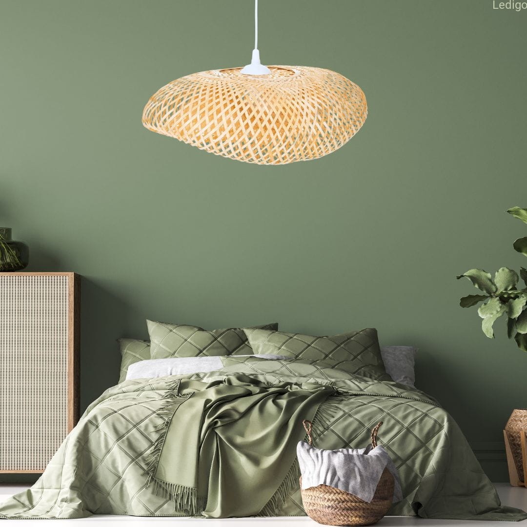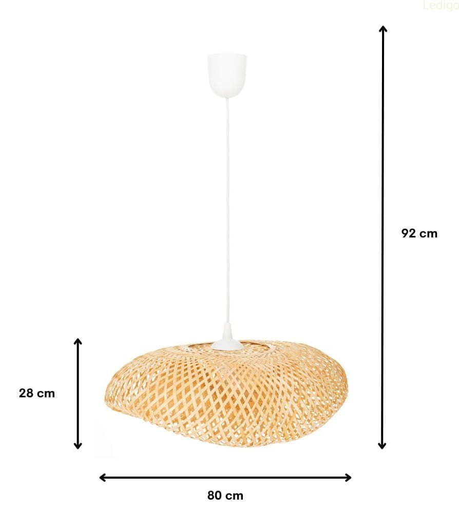 - gra światła i cienia - kluczem do uroku tego modelu jest jego ażurowa konstrukcja. Ręcznie pleciony bambus nie blokuje światła, lecz subtelnie je filtruje. Po włączeniu lampy, na ścianach i suficie pojawia się widowiskowa mozaika cieni, która buduje przytulny klimat.