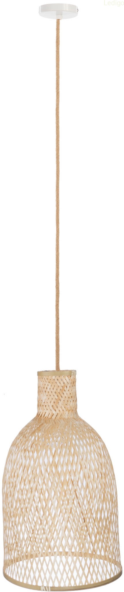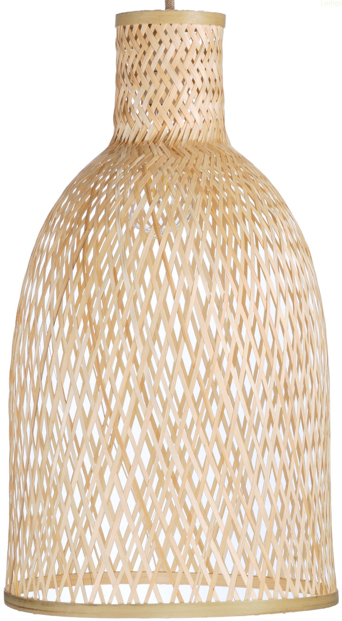 Lampa o dużym, ręcznie wykonanym bambusowym kloszu - z możliwością regulacji zawieszenia. Naturalny materiał i ręczna robota sprawia że egzemplarze mogą się między sobą różnić w detalach takich jak odcień czy wykończenie.