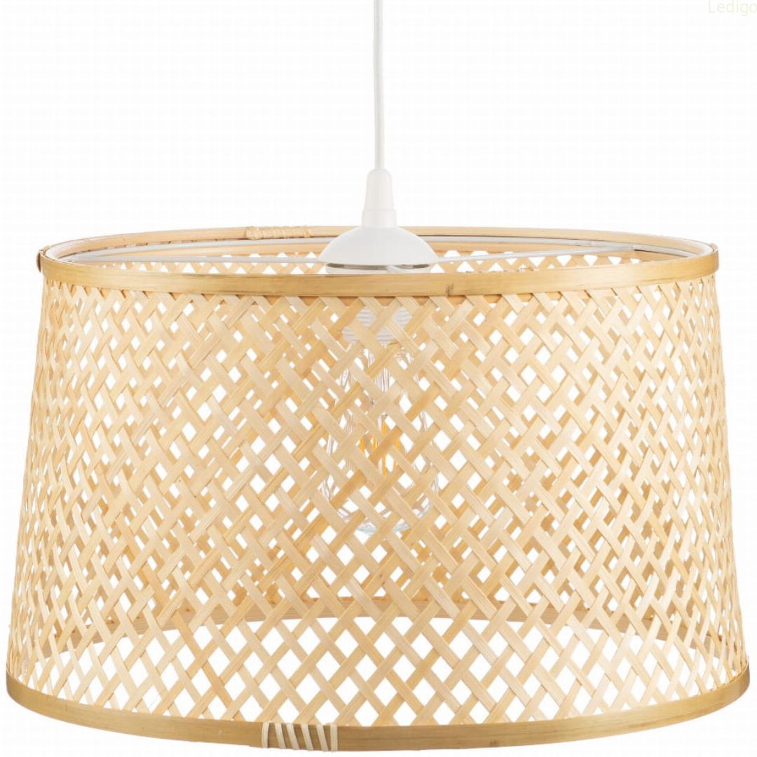 Klosz lampy został ręcznie wykonany z autentycznego drewna bambusowego. Biały kabel nadaje estetycznego charakteru.