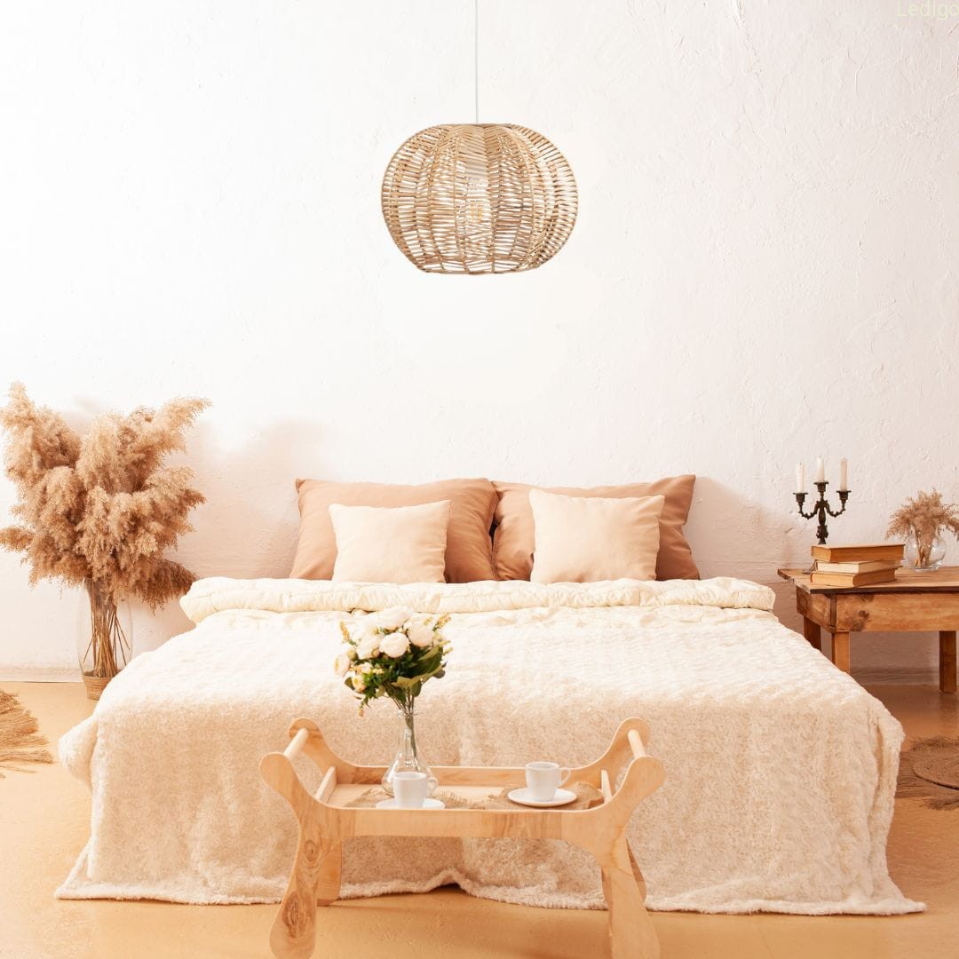 - Ręcznie wyplatany klosz – unikalny design i ciepłe rozproszenie światła