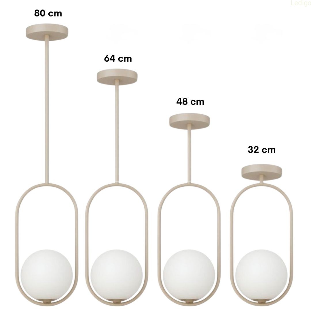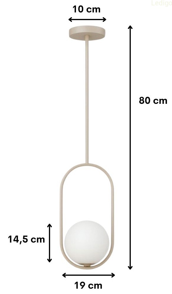 Rodzaj lampy: lampa wisząca Dwuobwodowość: nie Rodzaj gwintu: E14 Styl: nowoczesny Tworzywo: metal + szkło Kolor klosza: mleczny Kolor uchwytu: beżowy Kolor podstawy lampy: beżowy Kolor kabla: czarny Kolor podsufitki: beżowy Wysokość całkowita: od 38cm do 80cm Szerokość całkowita: 19cm Głębokość klosza: 14cm Uwaga! Należy zastosować żarówkę o maksymalnej wysokości 10 cm Szerokość klosza: 14,5cm Wysokość klosza: 14,5cm Średnica maskownicy: 10cm Waga produktu: 1,050 kg Możliwość ściemniania: w zależności od żarówki Stopień ochrony IP: IP20 Regulacja wysokości: tak Napięcie: 230V Źródło światła w zestawie: nie Czas realizacji: 24h