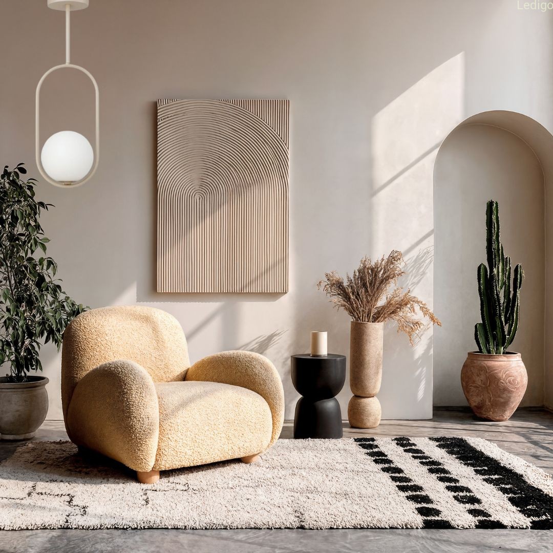 1. Estetyczne wykończenie: Dzięki ukrytemu przewodowi w beżowej tulei, lampa prezentuje się bardziej schludnie i estetycznie. Brak widocznych kabli lub przewodów dodaje elegancji i uporządkowania.