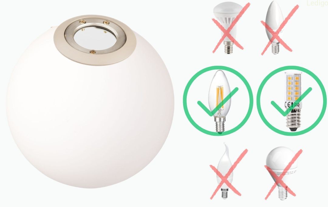 Do lampki pasują wyłącznie wąskie i krótkie żarówki o maksymalnych wymiarach: