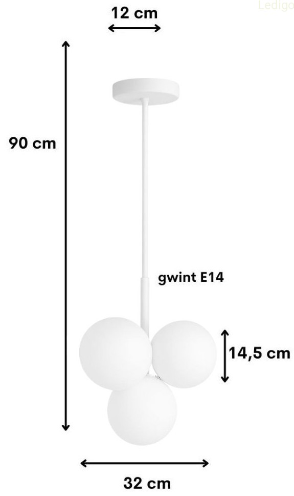 | Głębokość klosza | 14cm Uwaga! Należy zastosować żarówkę o maksymalnej wysokości 10 cm i średnicy 3,5cm |