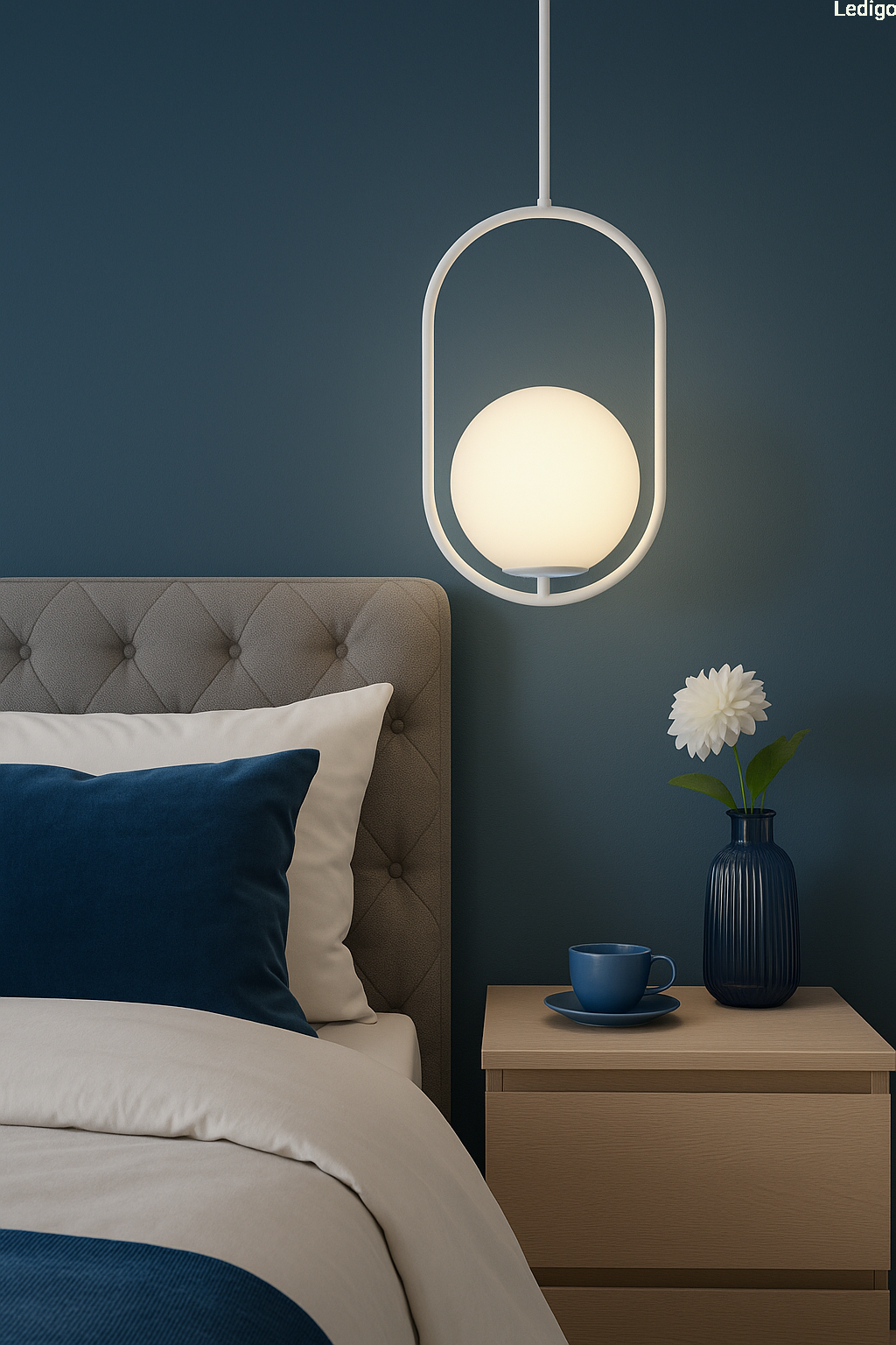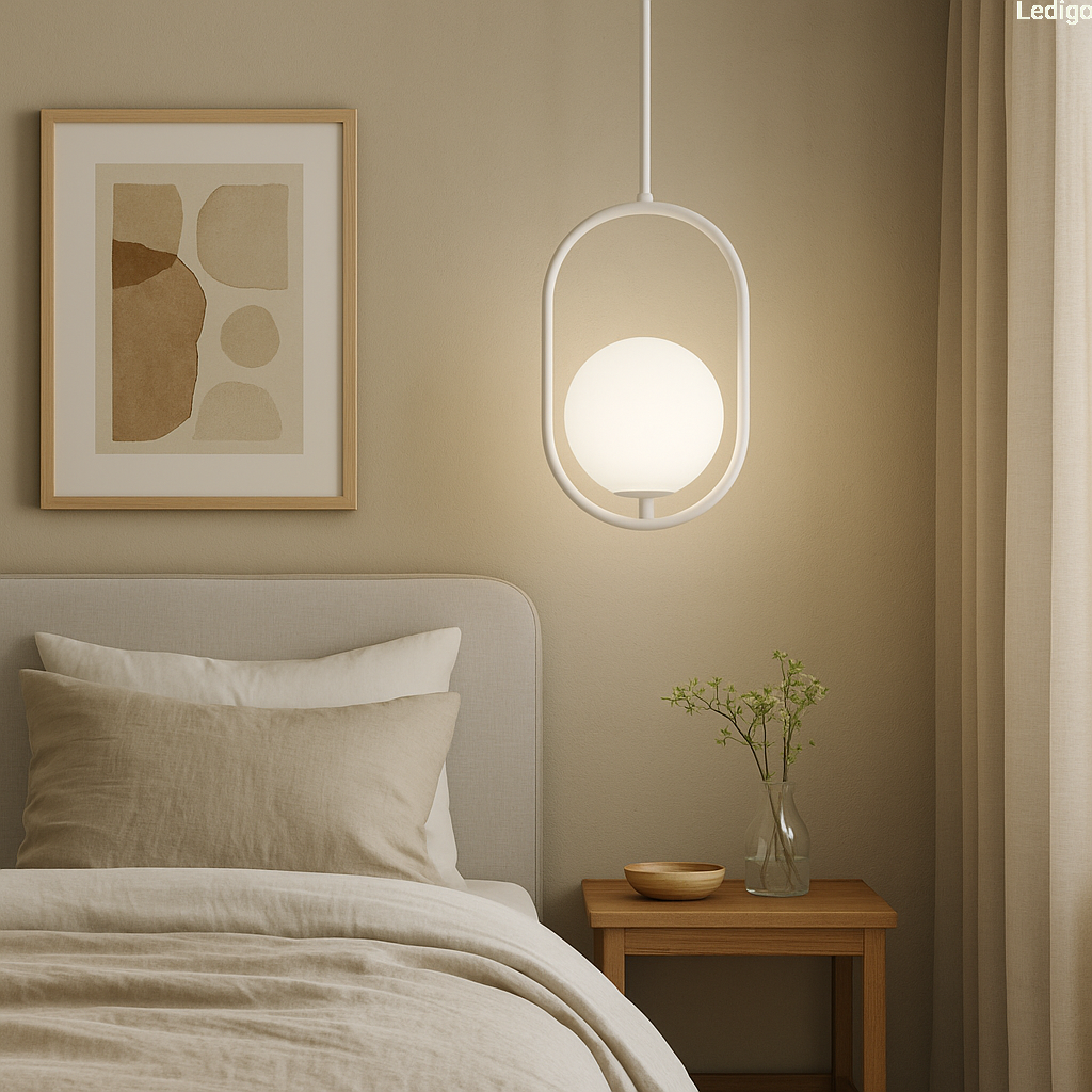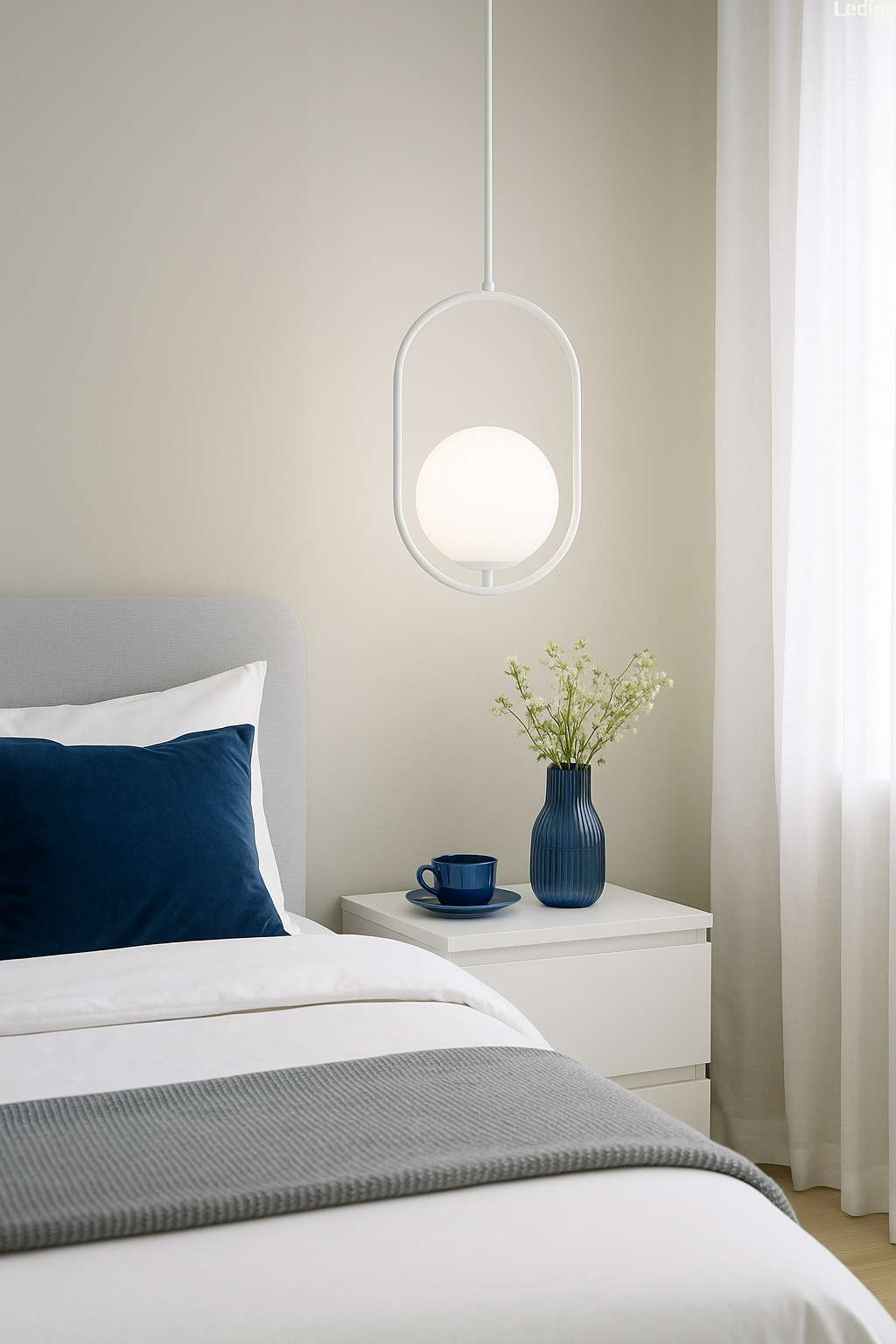 Do sypialni - lampa sprawdzi się zawieszona np. przy łóżku. Biały kolor klosza stworzy miękkie i przyjemne światło, które nie będzie razić w oczy.