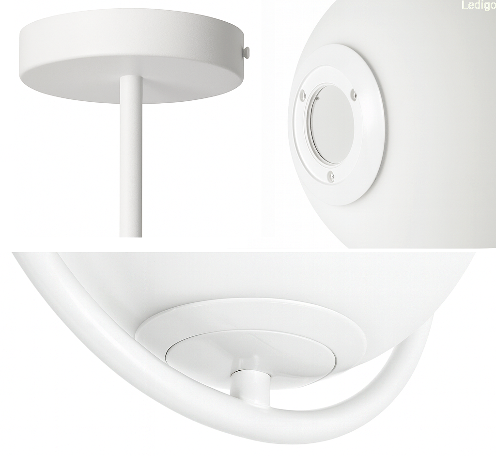 Przewód lampy jest ukryty w białej tulei (tuleje można w każdej chwili zdemontować i zawiesić lampę na samym kablu)