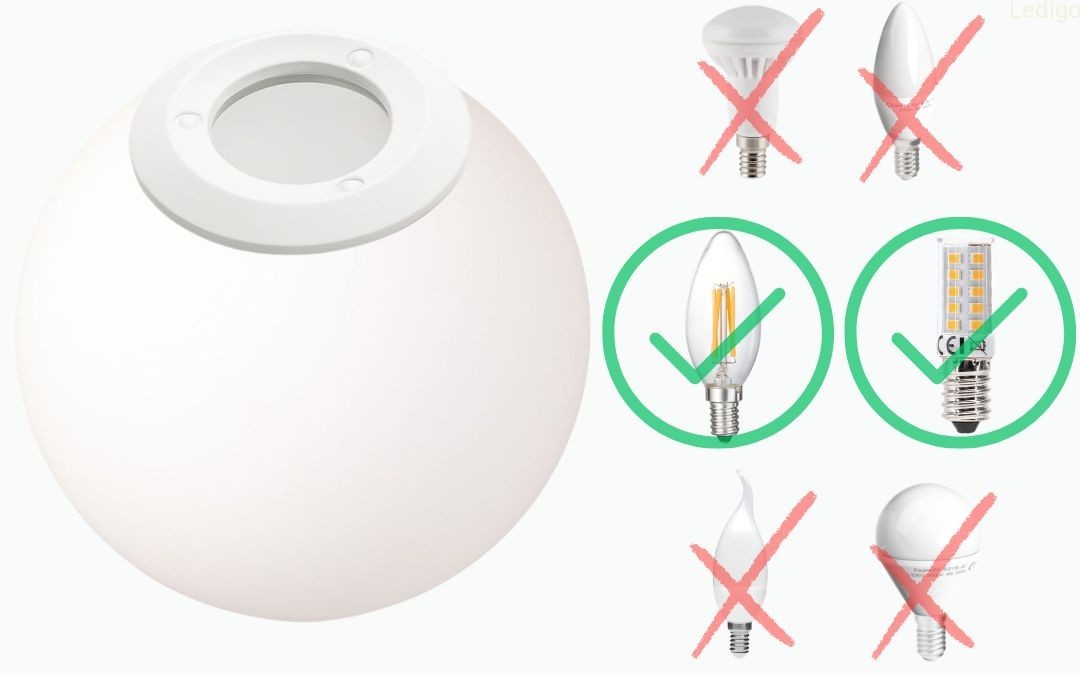 Do lampki pasują wyłącznie wąskie i krótkie żarówki o maksymalnych wymiarach: