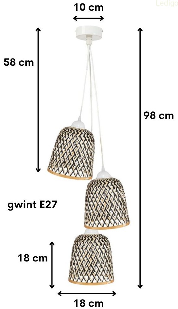 | Wysokość całkowita | Maksymalna długość przewodu z zamontowanym kloszem 98cm |