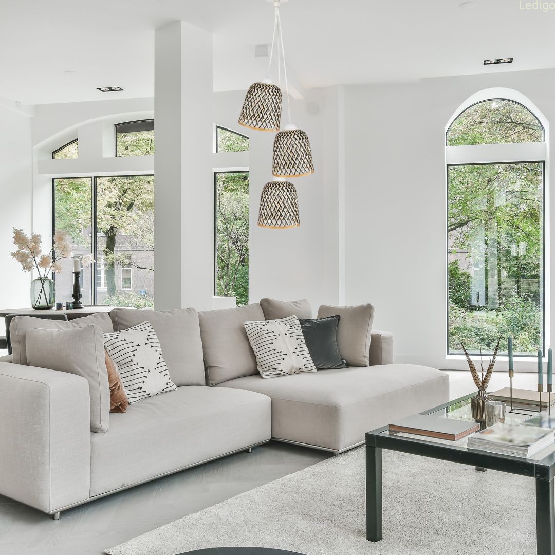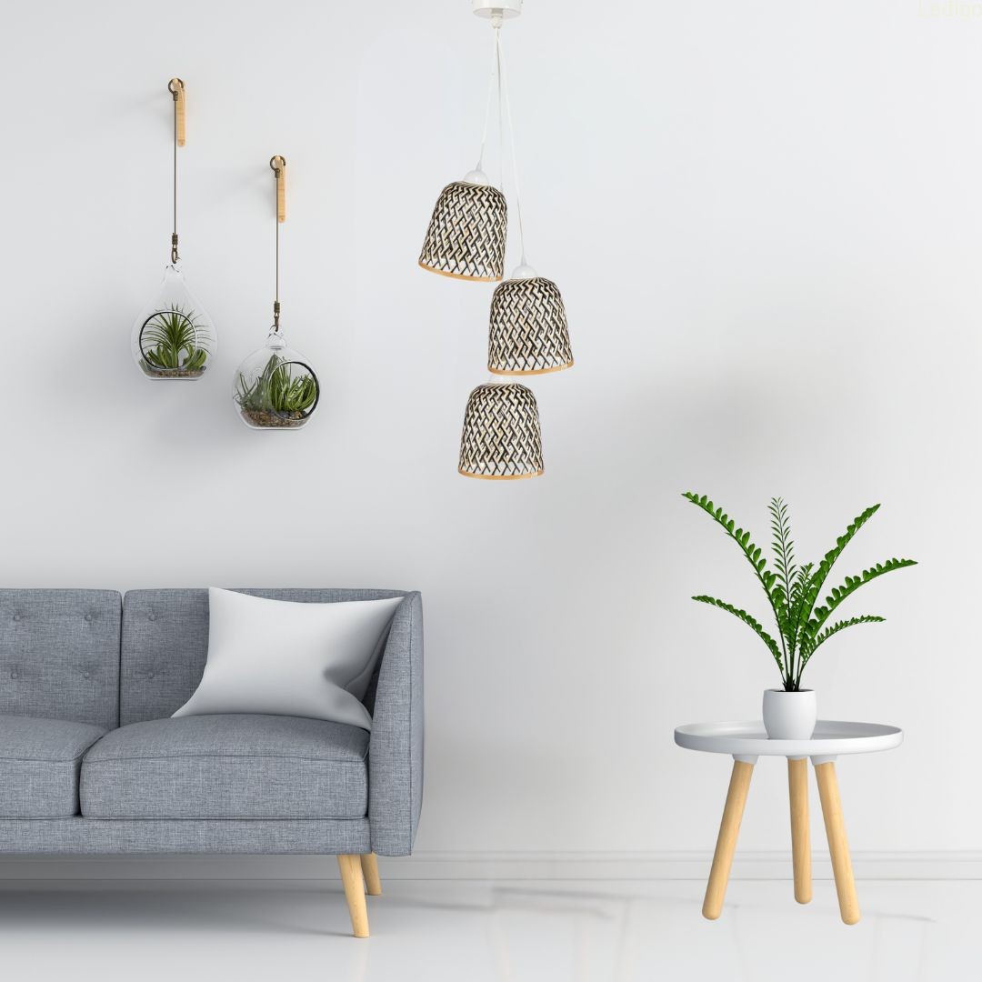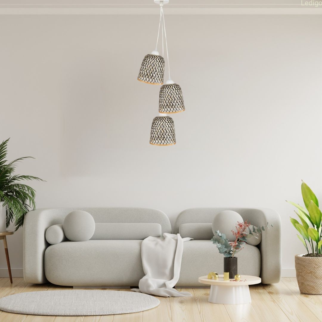 Lampa wisząca TRIO biała z bambusowymi kloszami. Świetnie sprawdzi się tam gdzie potrzebujesz więcej światła.