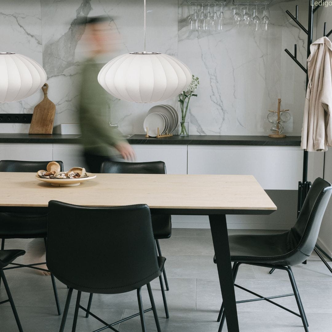 Lampa z kolekcji CLOUD wyróżnia wyjątkowy design. Kształt elipsy sprawia że lampa znakomicie prezentuje się jako główny żyrandol w salonie ale także jako dodatkowa lampa nad stół w kuchni bądź jadalni.