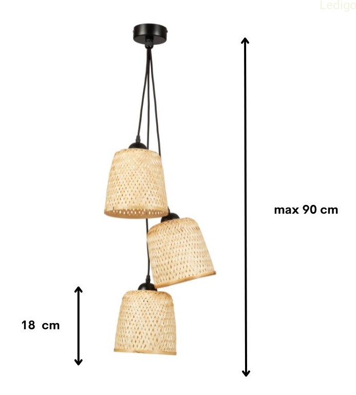 Lampa wisząca TRIO czarna z bambusowymi kloszami. Świetnie sprawdzi się tam gdzie potrzebujesz więcej światła.