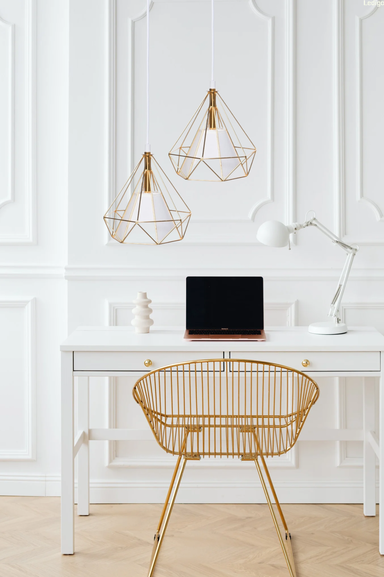 Model lampy GEO często wybierany jest jako główne oświetlenie salonu czy kuchni. Złoty kolor lampy nada blasku w salonie czy kuchni, a dzięki metalowej konstrukcji świetnie wpisze się w loftowe wnętrze. Zintegrowany biały abażur sprawia, że lampa nadaje wnętrzu przytulnego charakteru.