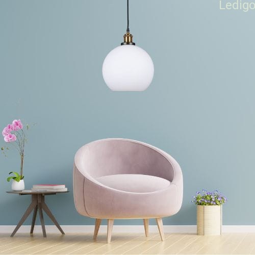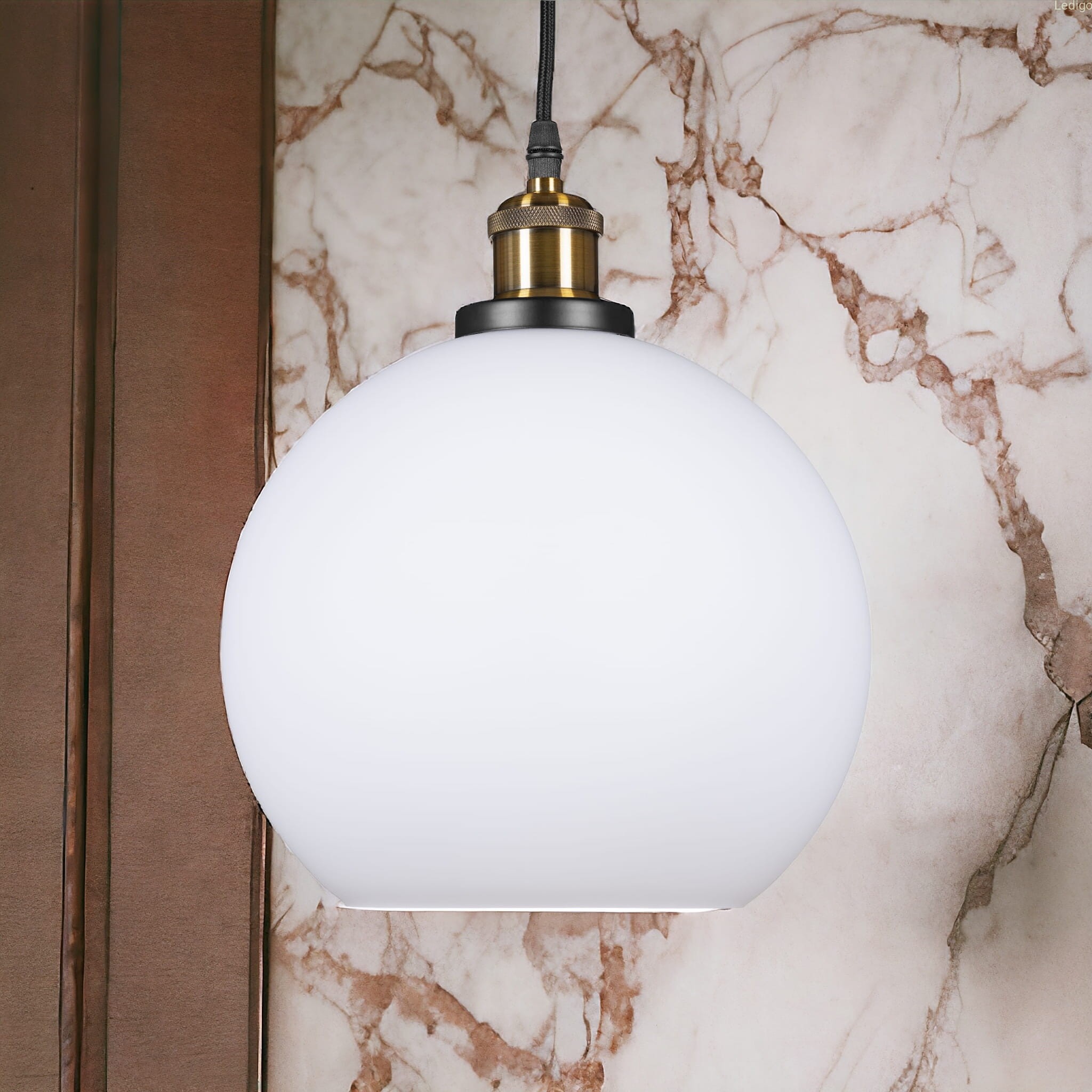 Lampa wisząca duża szklana kula mleczna biała