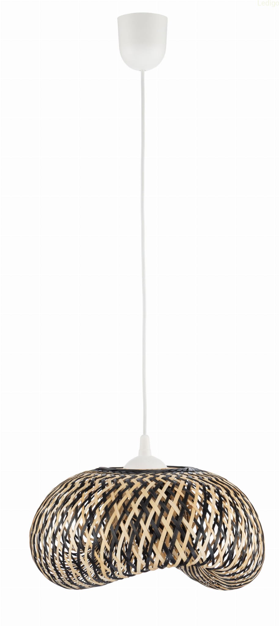 Lampa Nusa 50 cm to coś więcej niż zwykły żyrandol – to kawałek natury zamknięty w lekkiej, artystycznej formie, który potrafi całkowicie odmienić atmosferę wnętrza. Klosz wykonany jest z dwukolorowej plecionki (połączenie naturalnego beżu i czerni), co nadaje wnętrzu ciepły, egzotyczny charakter.