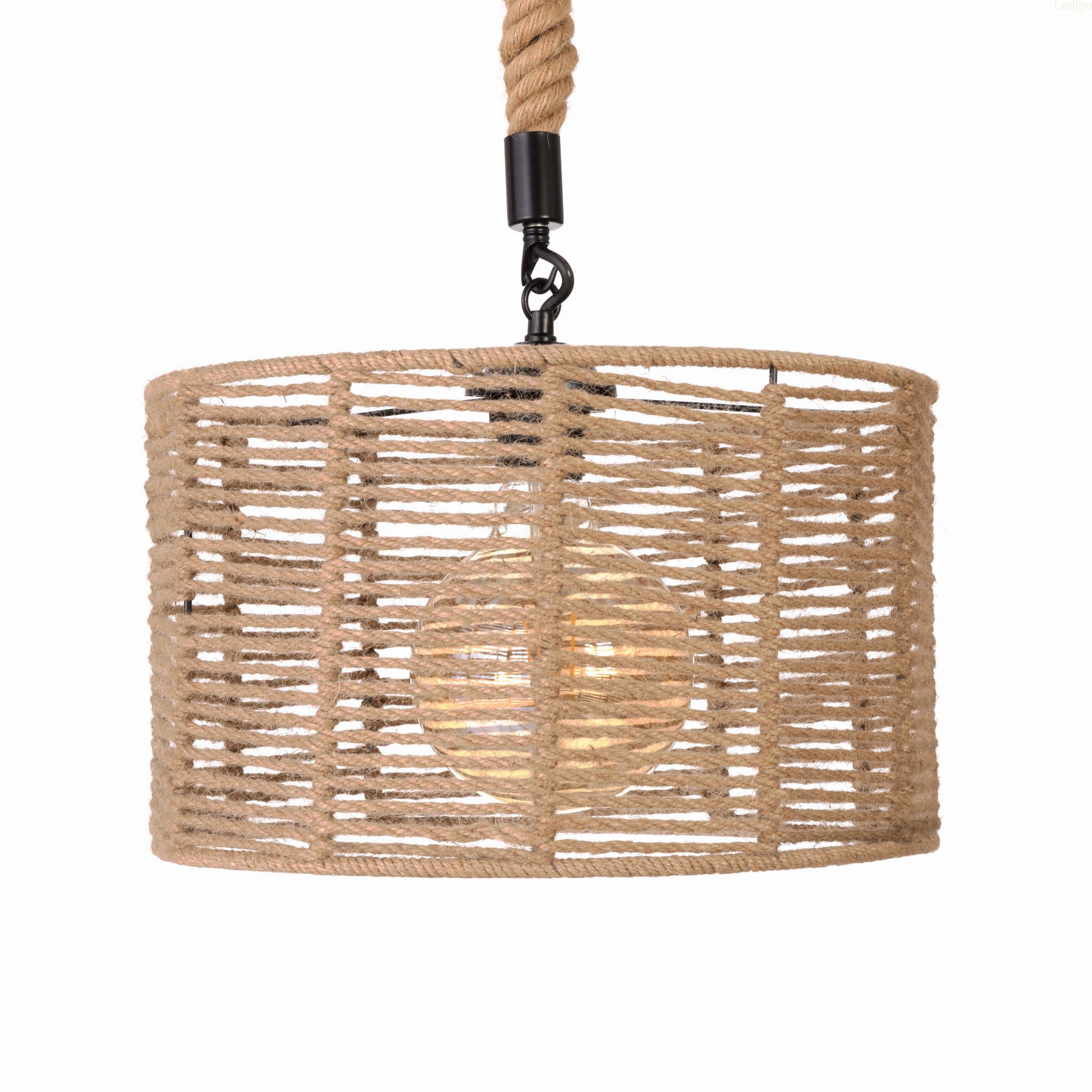 EKO DESIGN - klosz lampy opleciony jutowym sznurkiem nadającym lampie eko design. Wystarczy dobrać dekoracyjne źródło światła a lampa rozświetli wnętrze i nada nowy charakter. Lampa w stylu boho świetnie komponuje się we wnętrzach inspirowanych naturą. Przepięknie prezentuje się na tle drewna szarości i ceramiki. Ociepli wizualnie wnętrze Pasuje do kuchni i salonu ale także do sypialni czy pokoju dziecięcego.