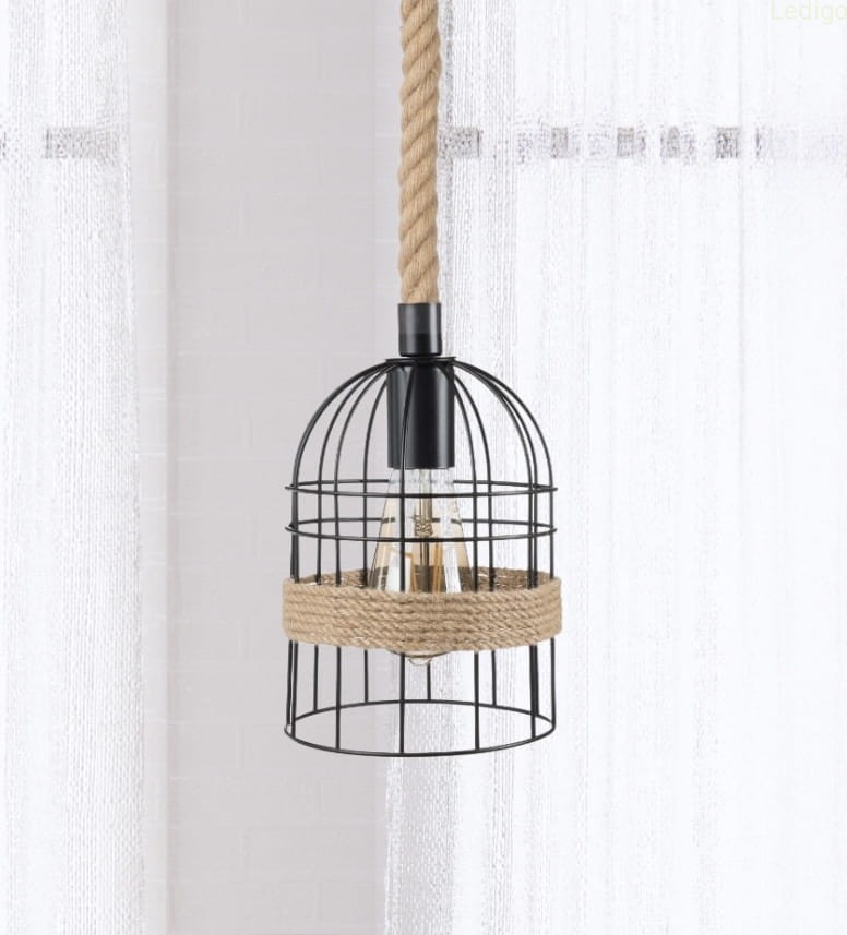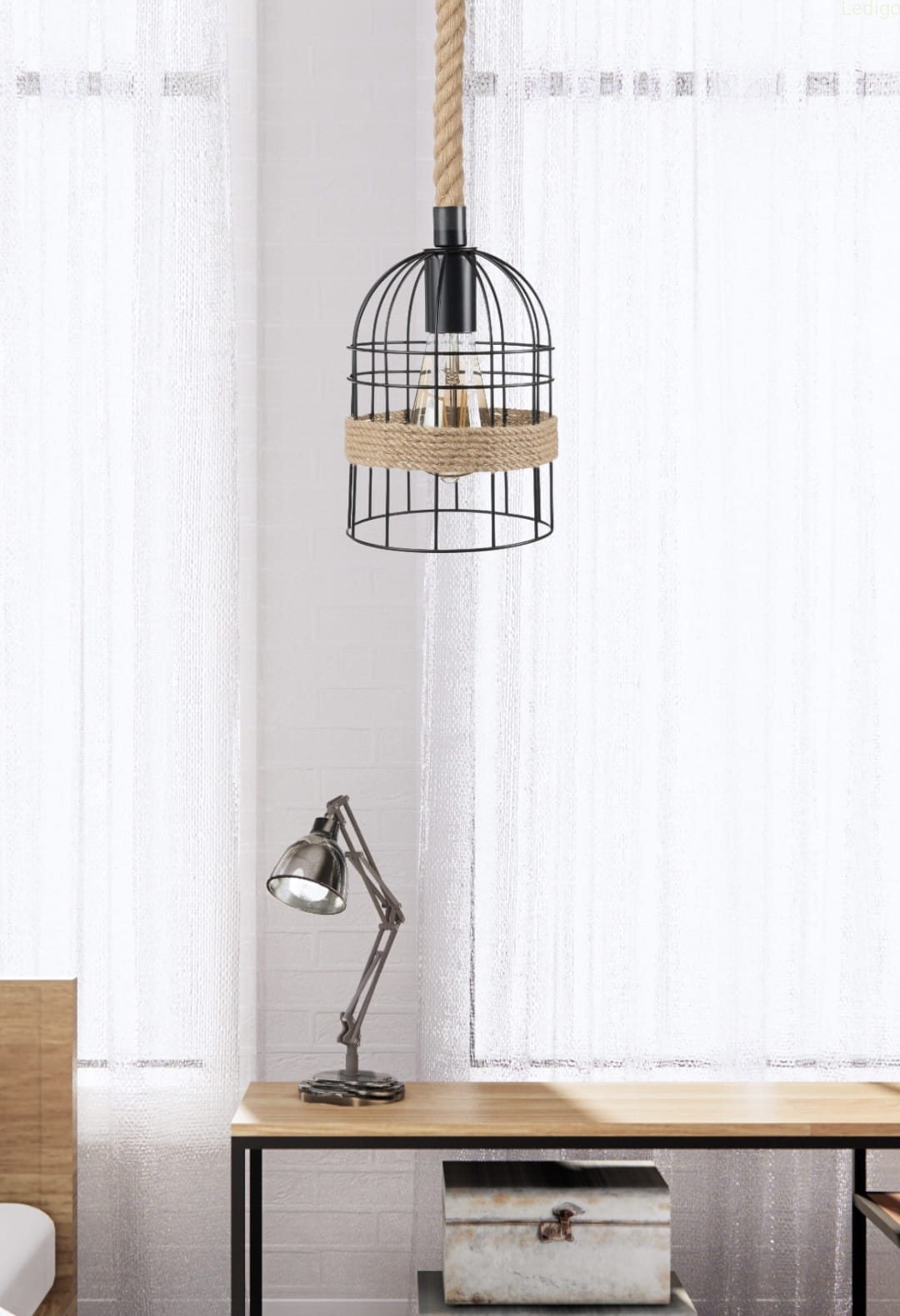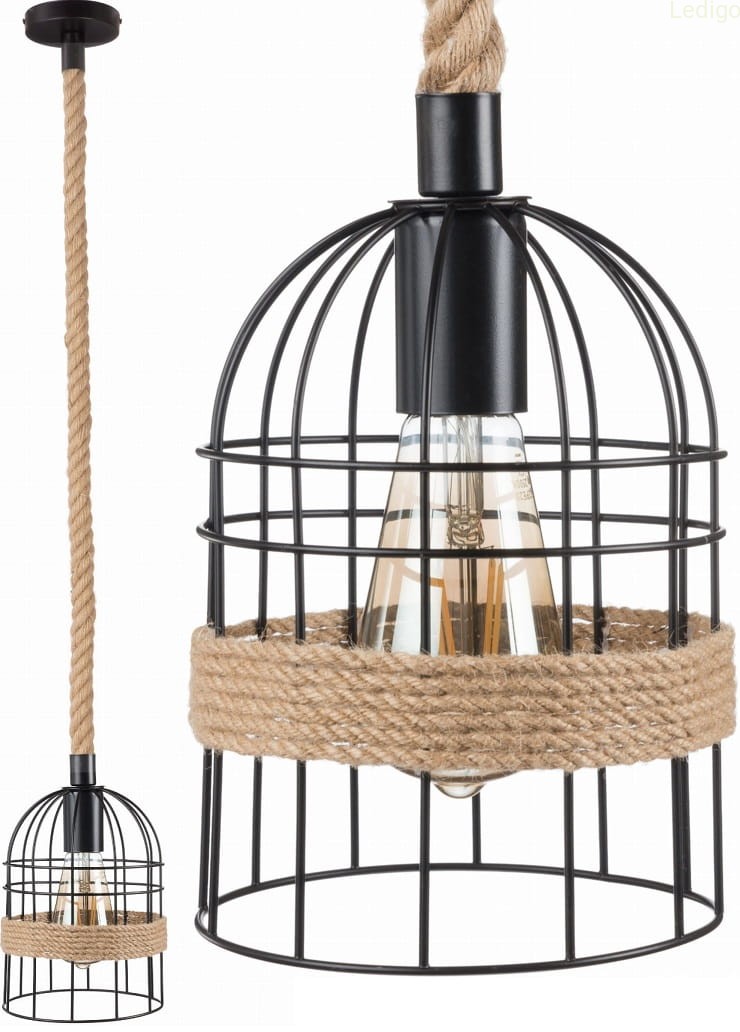 LAMPA WISZĄCA W OPLOCIE JUTOWYM - KLATKA