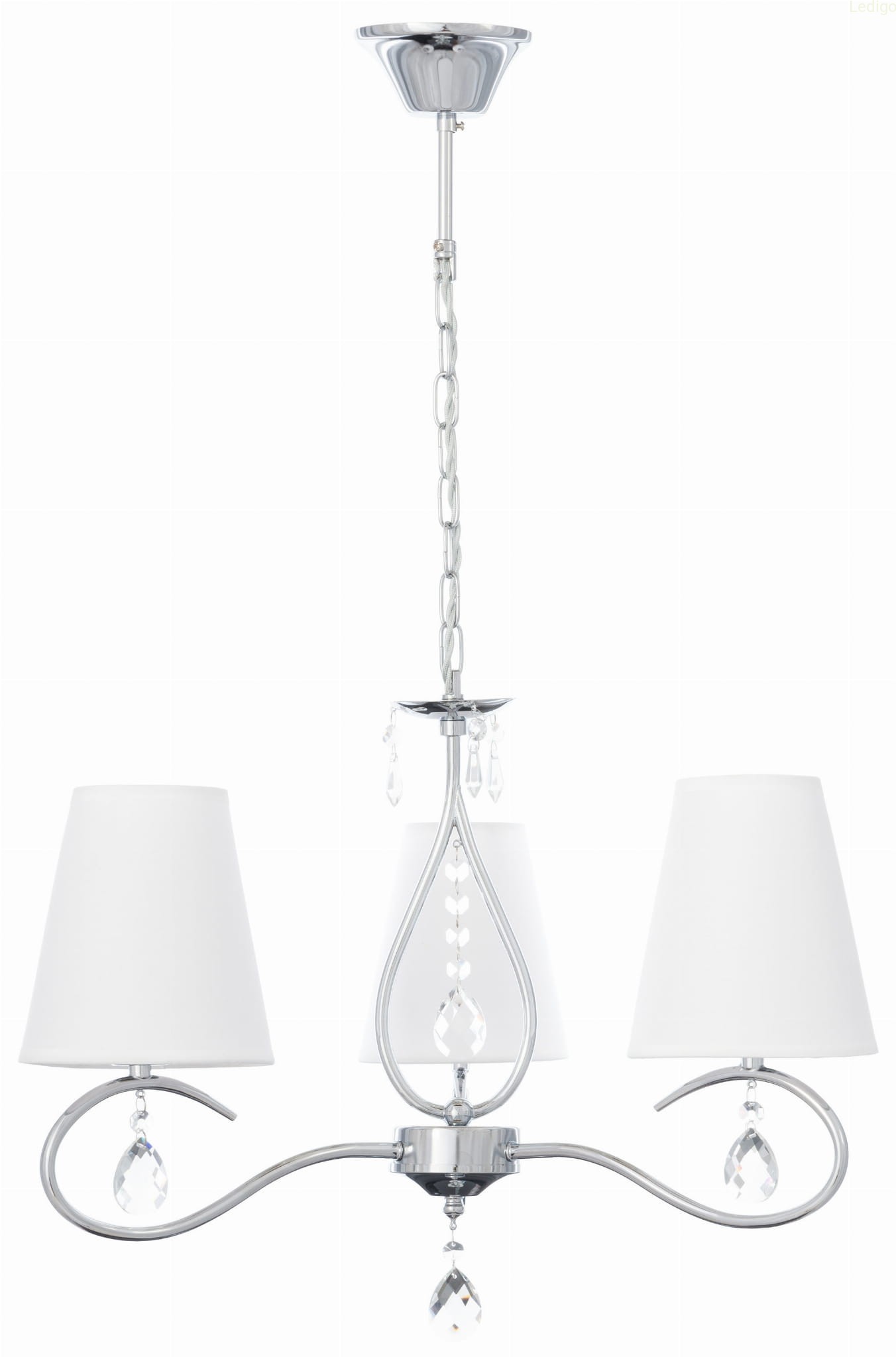Żyrandol wykonany jest z metalu pokrytego chromem w kolorze srebra. Uroku dodają mu delikatne szklane kryształki o klasie przejrzystości K5. Kryształki działają jak pryzmat, cudownie odbijając światło na ścianach i suficie. Klosik o wydłużonym kształcie stożka wykonane z materiału w kolorze białym.