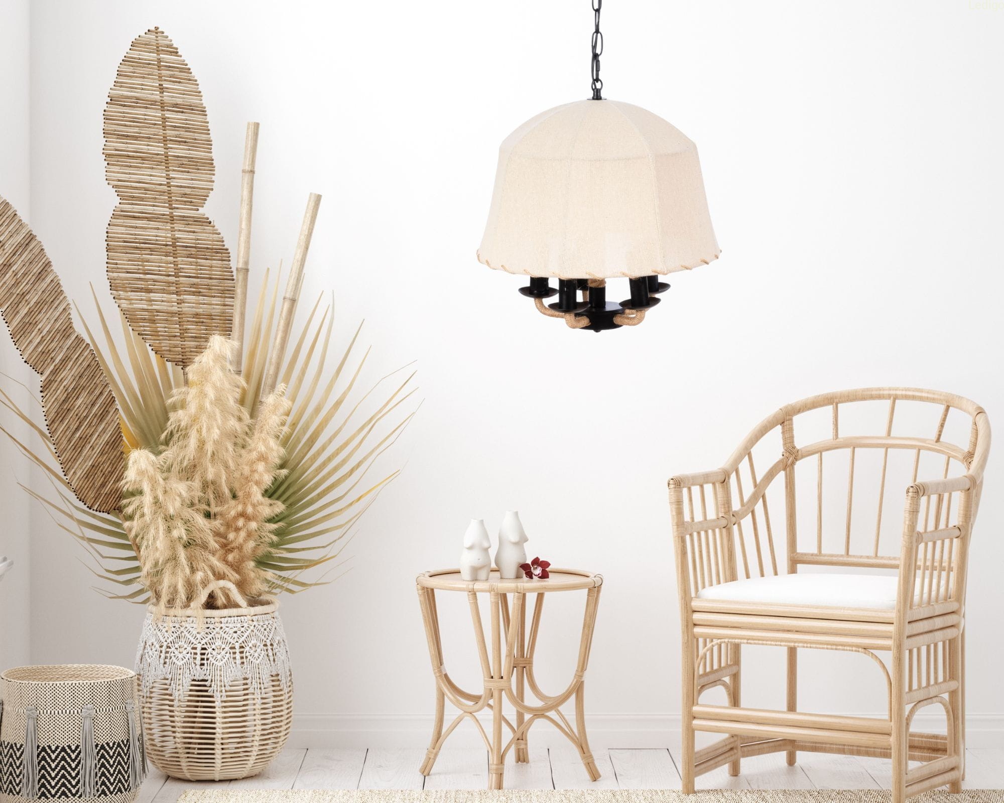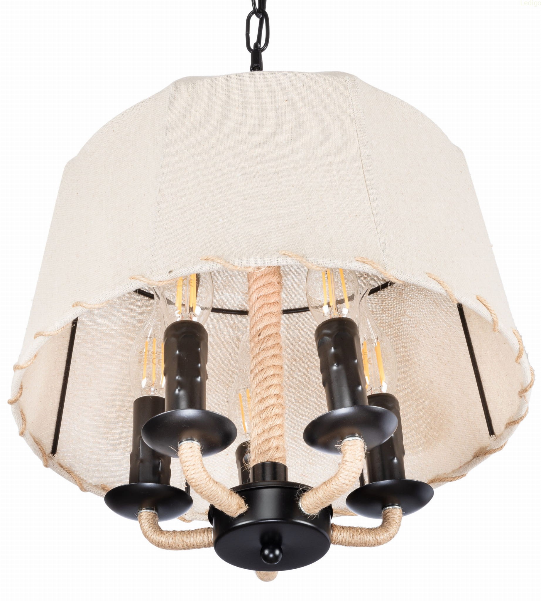 Rodzaj gwintu: E14 Rodzaj lampy: lampa sufitowa Dwuobwodowość: nie Rodzaj gwintu: E14 Styl: boho Tworzywo: tworzywo lniane Kolor klosza: beżowy Kolor uchwytu: Czarny Kolor kabla: Czarny Kolor podsufitki: Czarna metalowa Wymiary: średnica klosza 35 cm; całkowita długość lampy 140cm, wysokość klosza 32 cm Regulacja wysokości: tak Napięcie: 230V Źródło światła w zestawie: nie Czas realizacji: 24h
