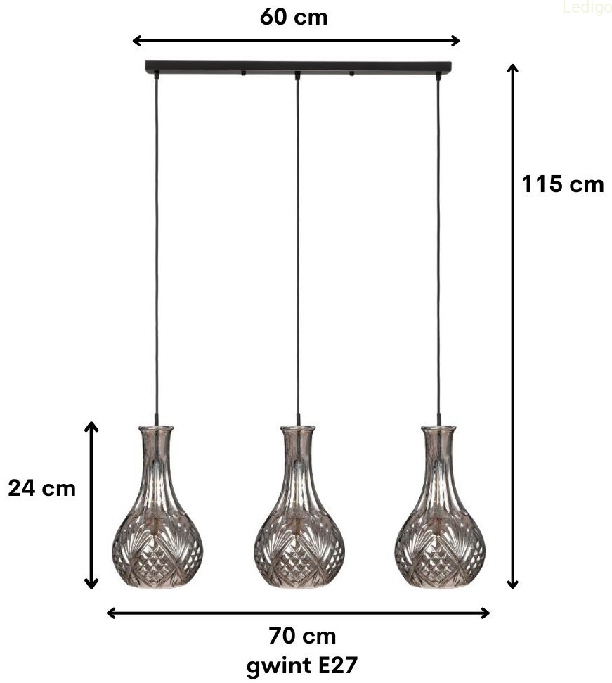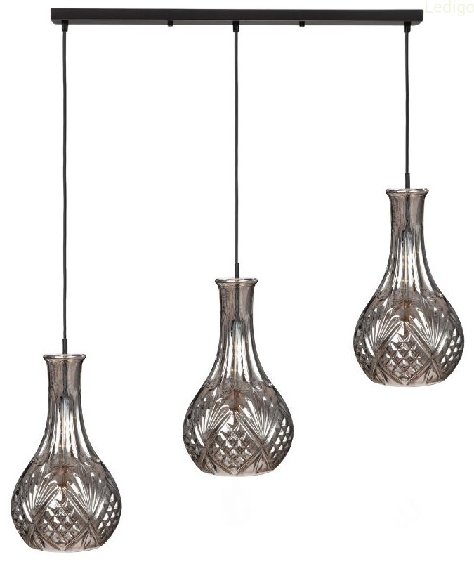 Lampa wisząca listwa potrójna kryształ karafka grafit